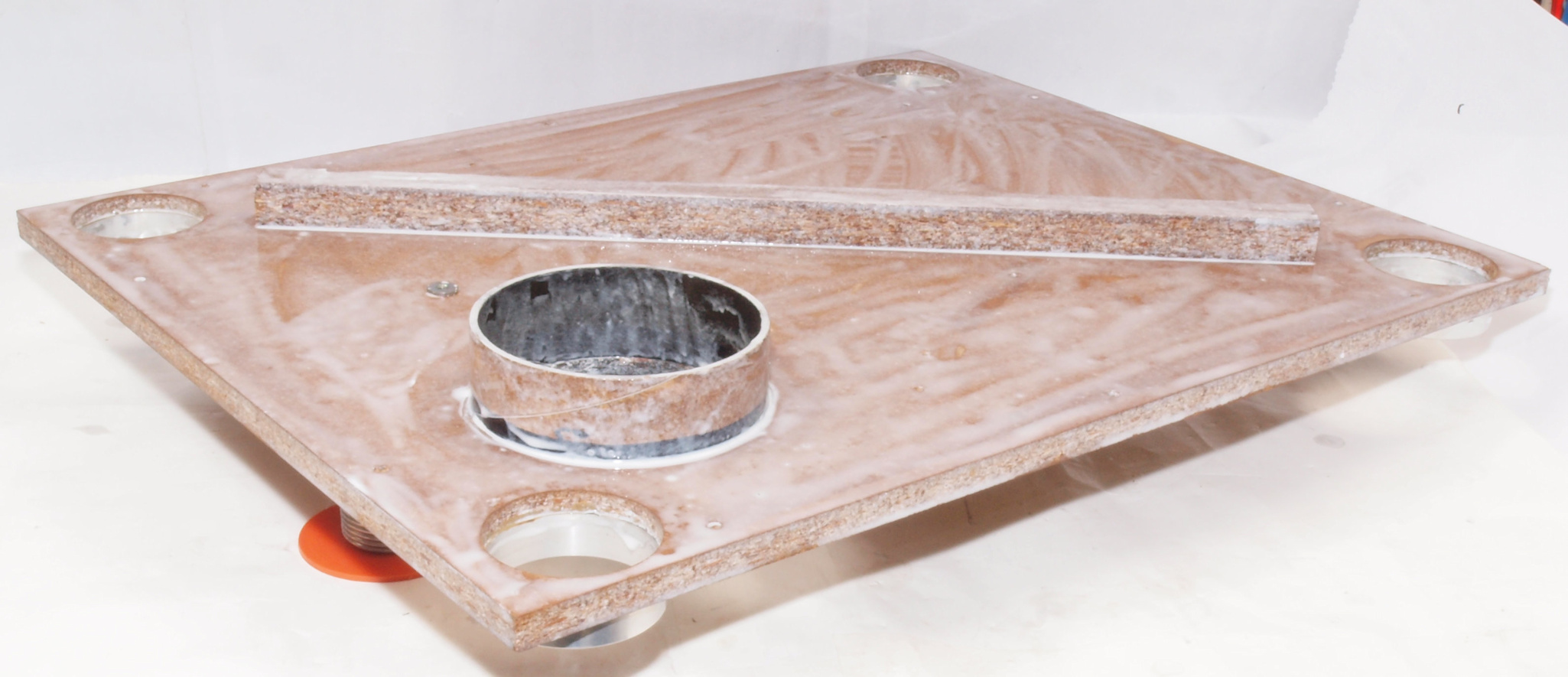 | W32. 修理中 本体木枠下。 圧縮材にボンドを染みこませる、ネジ穴も塗る。 | ||||||||||||||||||||||||||||||||||