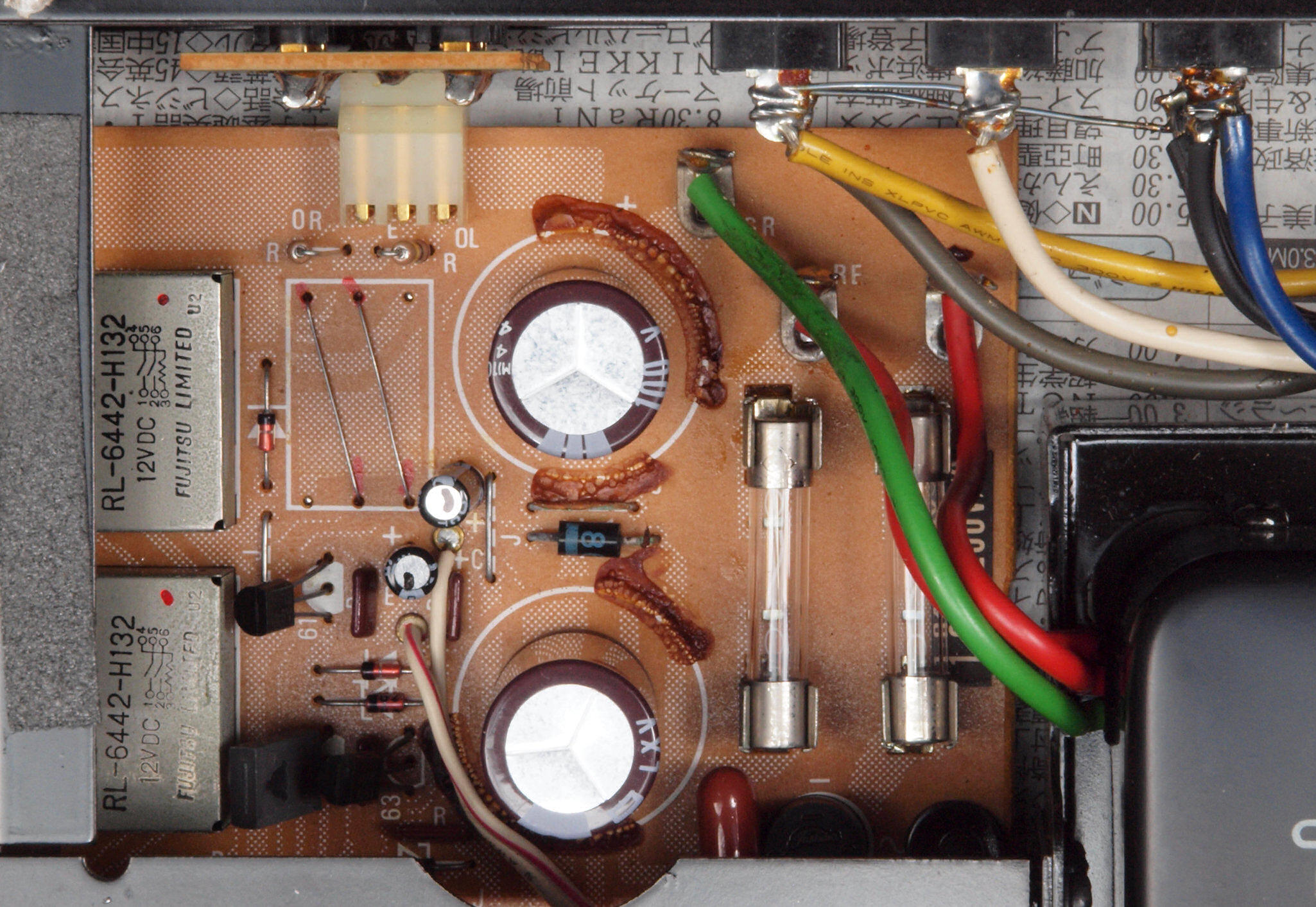 | B−1. 10台目。 電源ブロック電解コンデンサー交換で、左右で容量が異なる。 | |