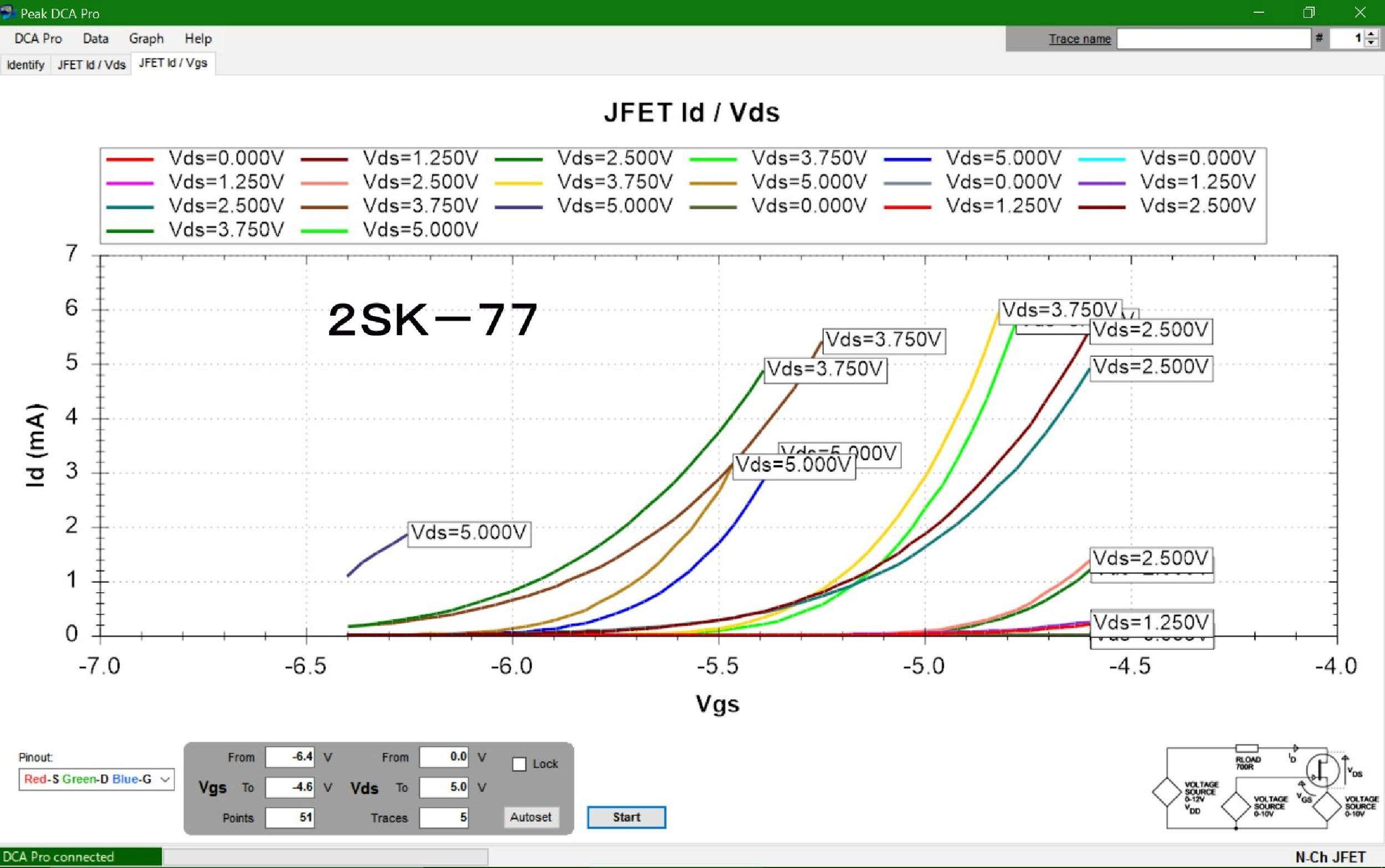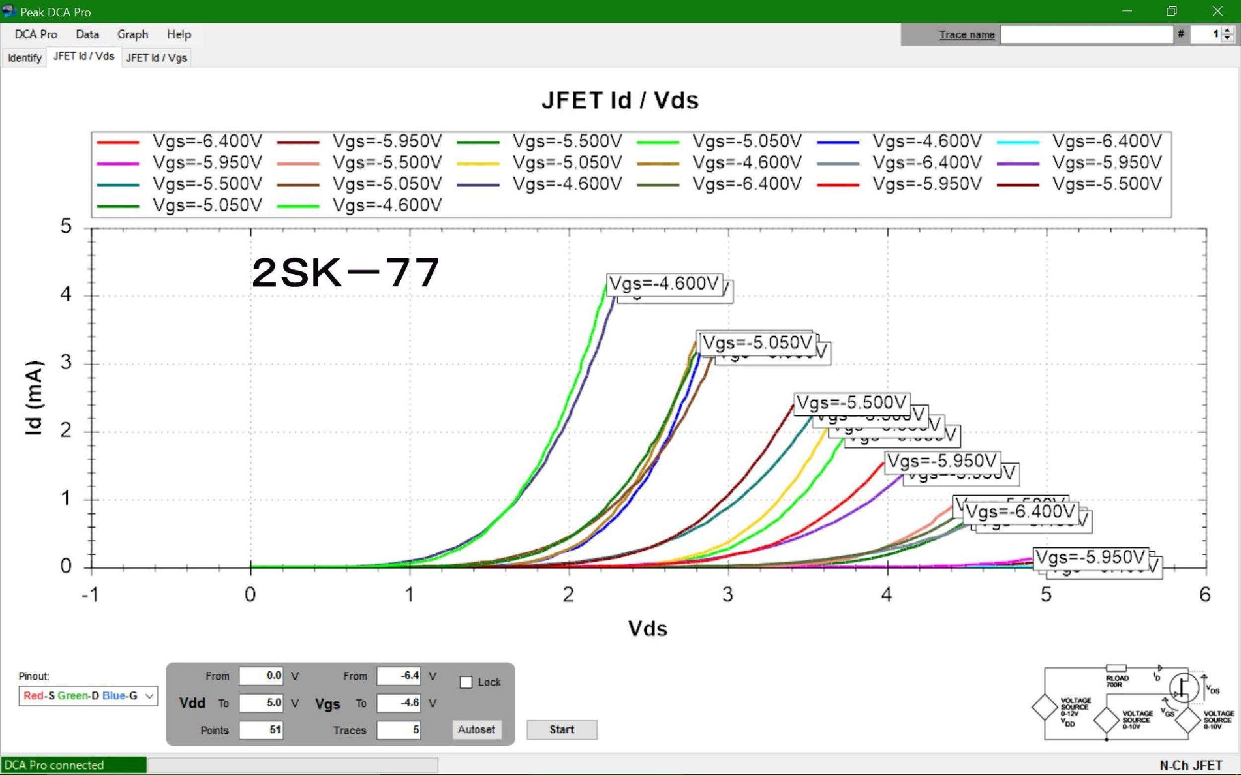 | A. 2SK77、2SK180d、THF51s測定。画像をクリックすると、大きく(横幅2050ドット)表示されます。 A11. 2SK77をatlas DCA Proで自動測定中。 |