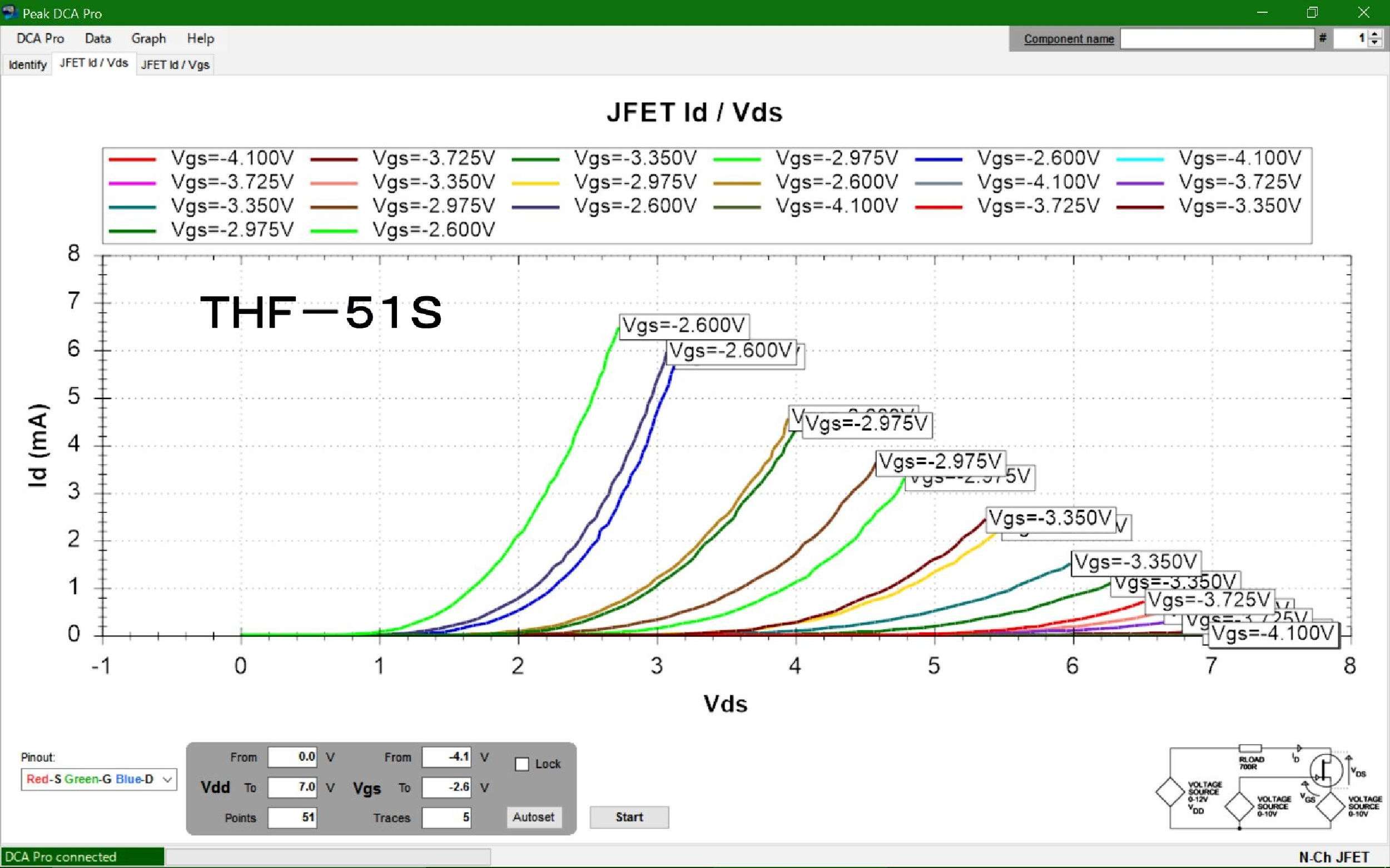 | A32. THF51s 4個の Id/Vds測定結果。製造メーカーの4本パックなので、非常に良く揃っている。 | ||||||||||||||||||||||||||||||||||||||||||||||||||||||||||||||||||||||||||||||||||||||||||||||||||||