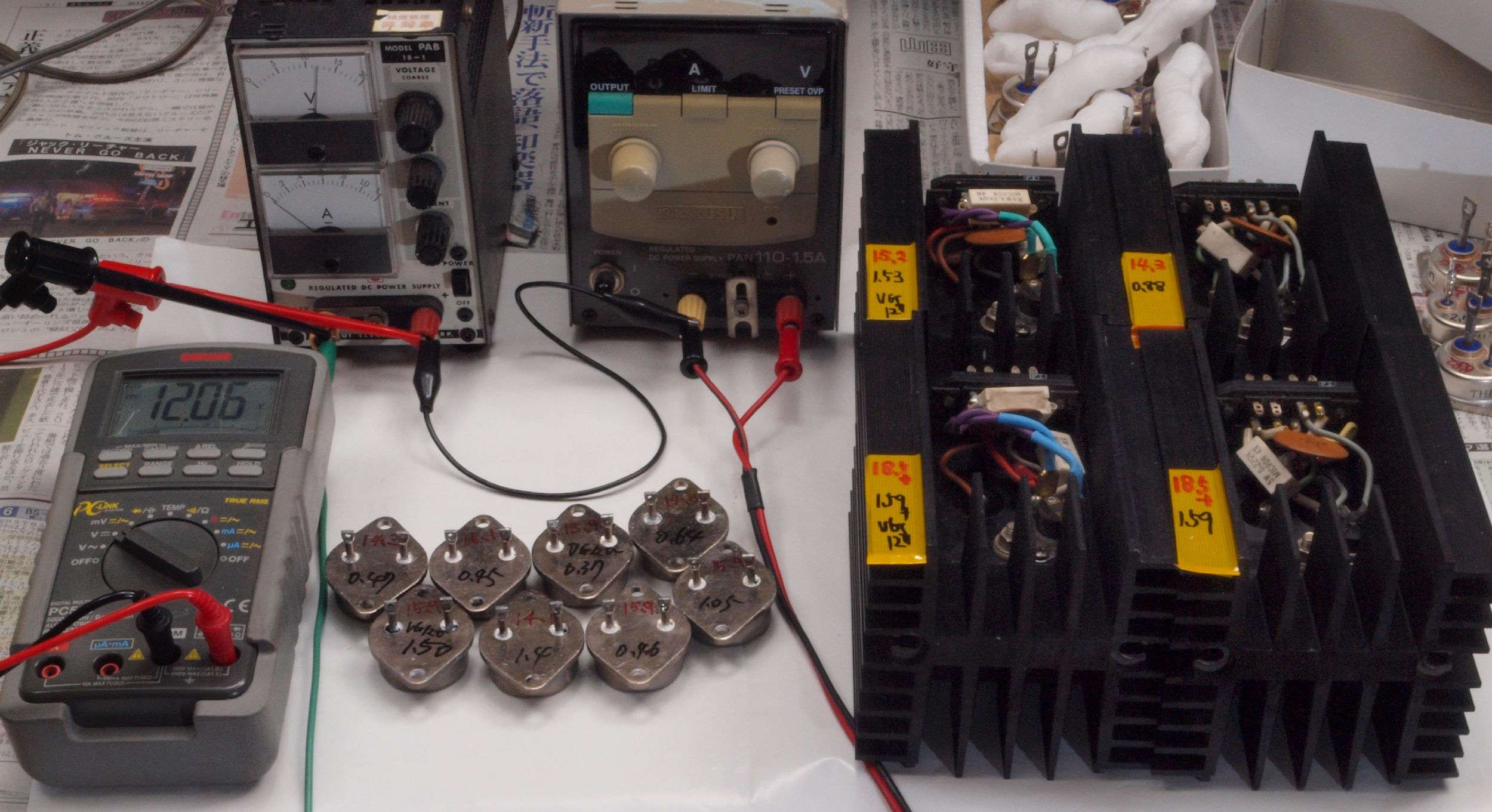 E. 調整・測定 D. 改造状況...改造ドライブ基板使用入手難の前段FET(電解トランジスター)等が死んでいる場合。