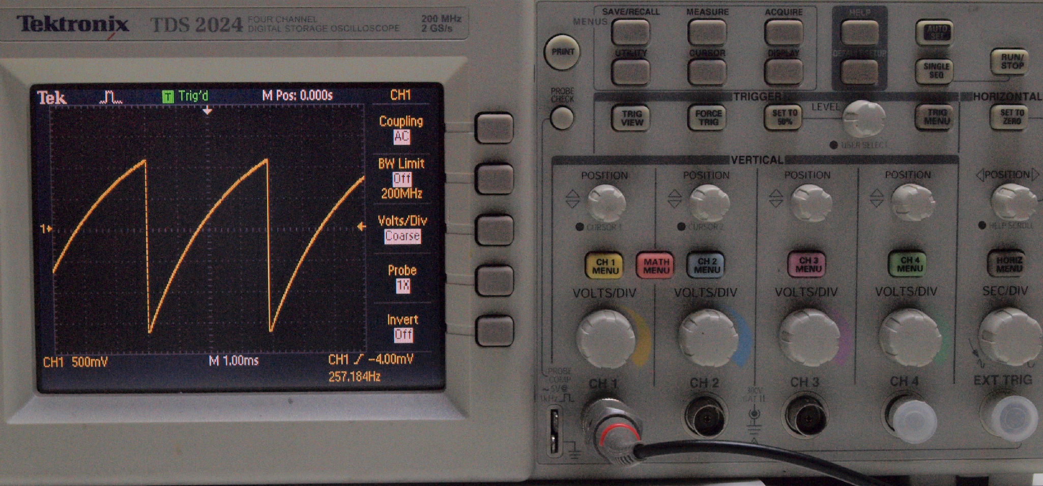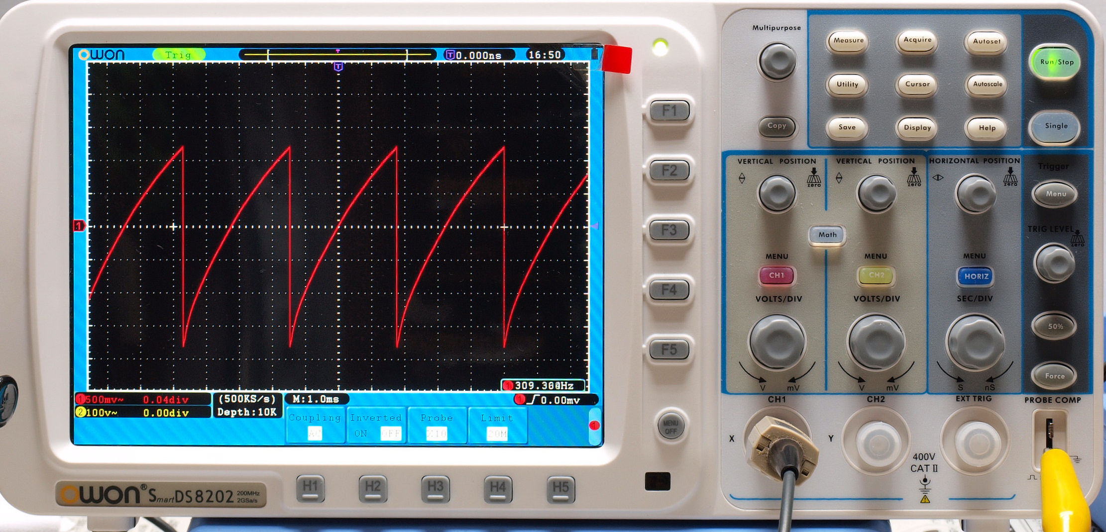 | T2. 調整・測定 . モーター駆動電圧をオシロで波形観測 |