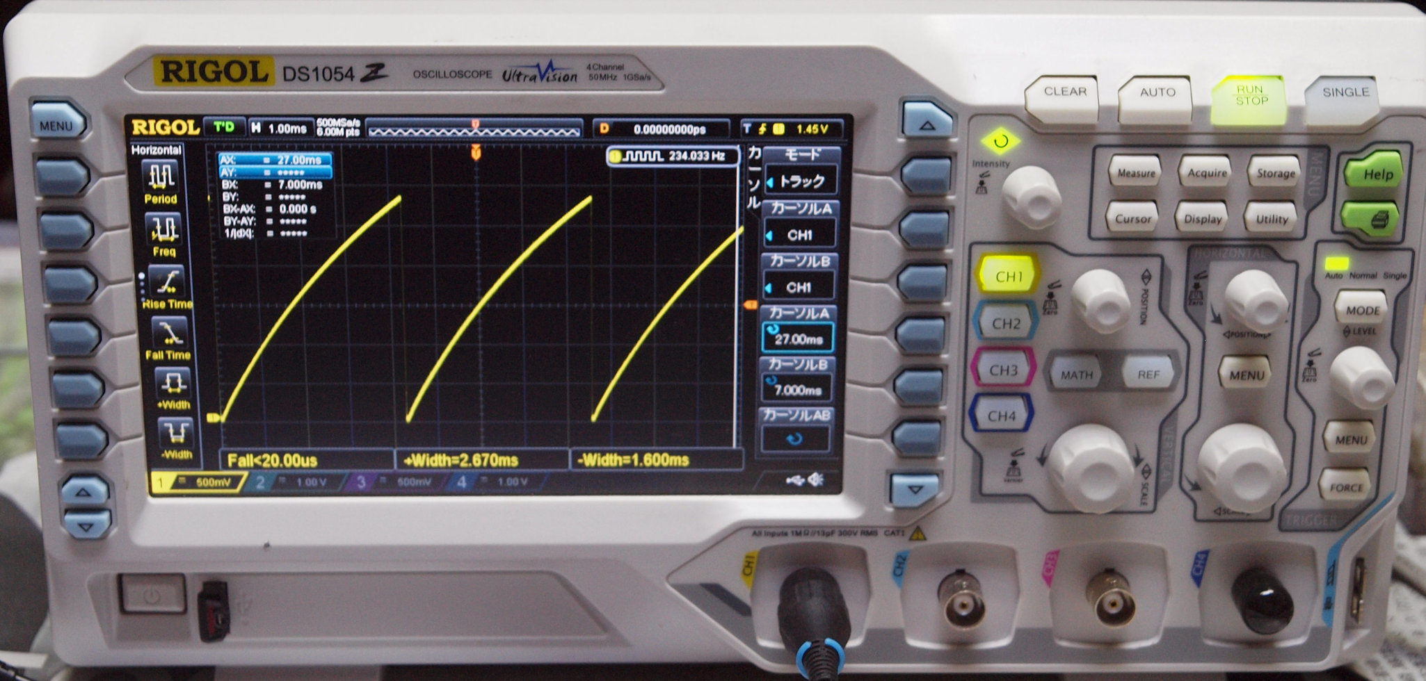 | E. 調整・測定。 画像をクリックすると、大きく(横幅2050ドット)表示されます。 E0. モーター駆動電圧をオシロで波形観測 |