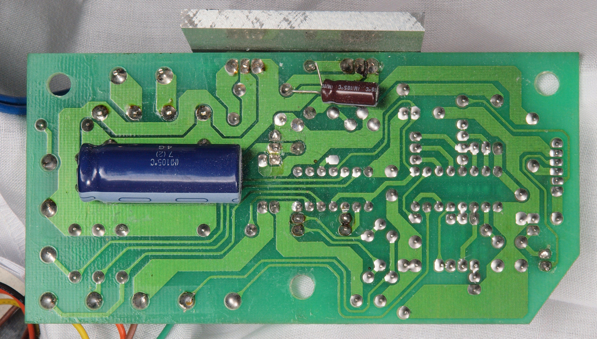 | C17. 修理(半田補正)後 モーター部コントロール基板裏。フイルムコンデンサー3個追加。 |