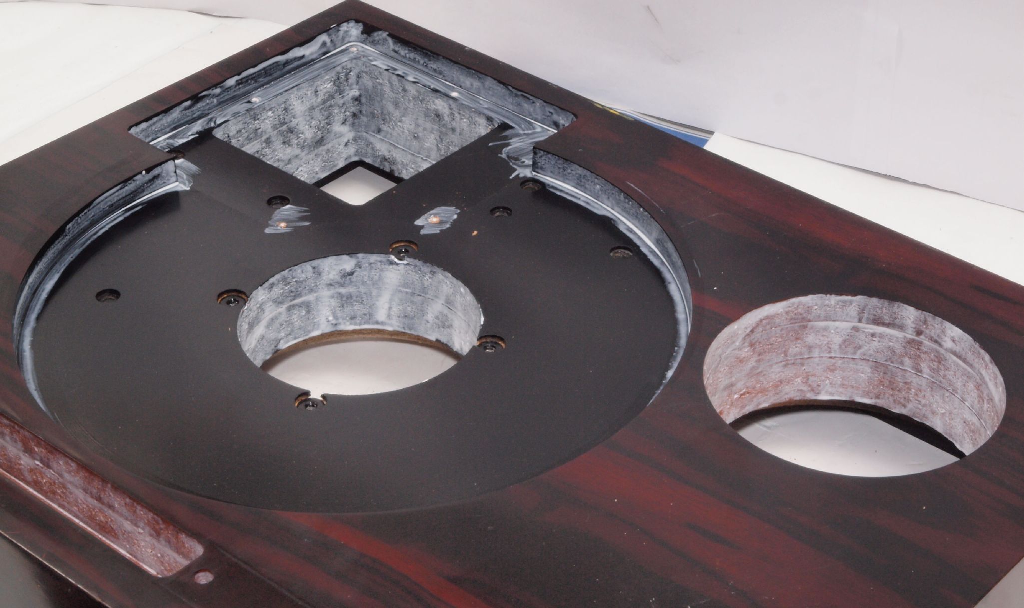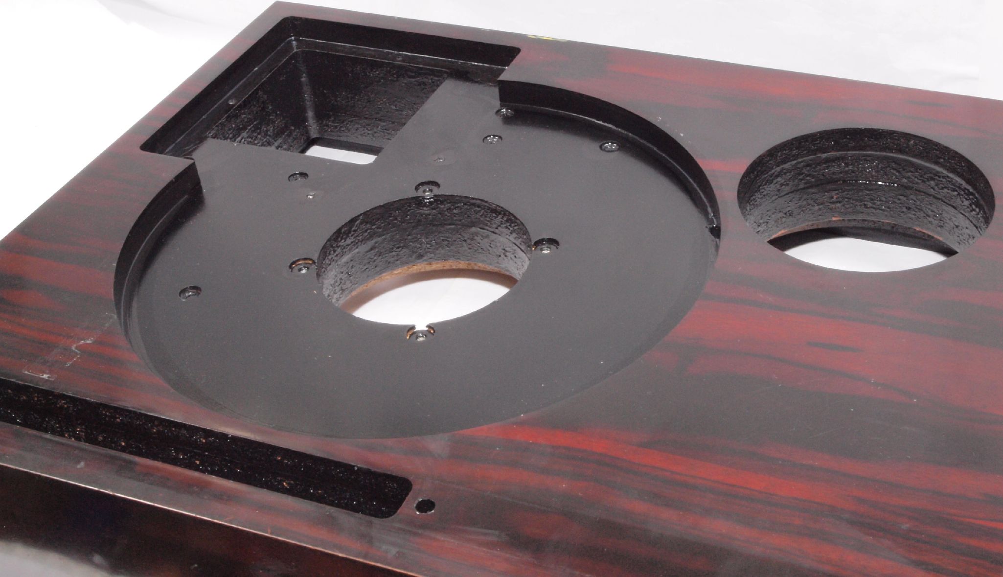 | W22. 修理中 モーター取付穴、タンテーブル軸受取付穴。 圧縮材にボンドを染みこませる。 | ||||||||||||||||||||||||||||||||||||||||||||||||||||
