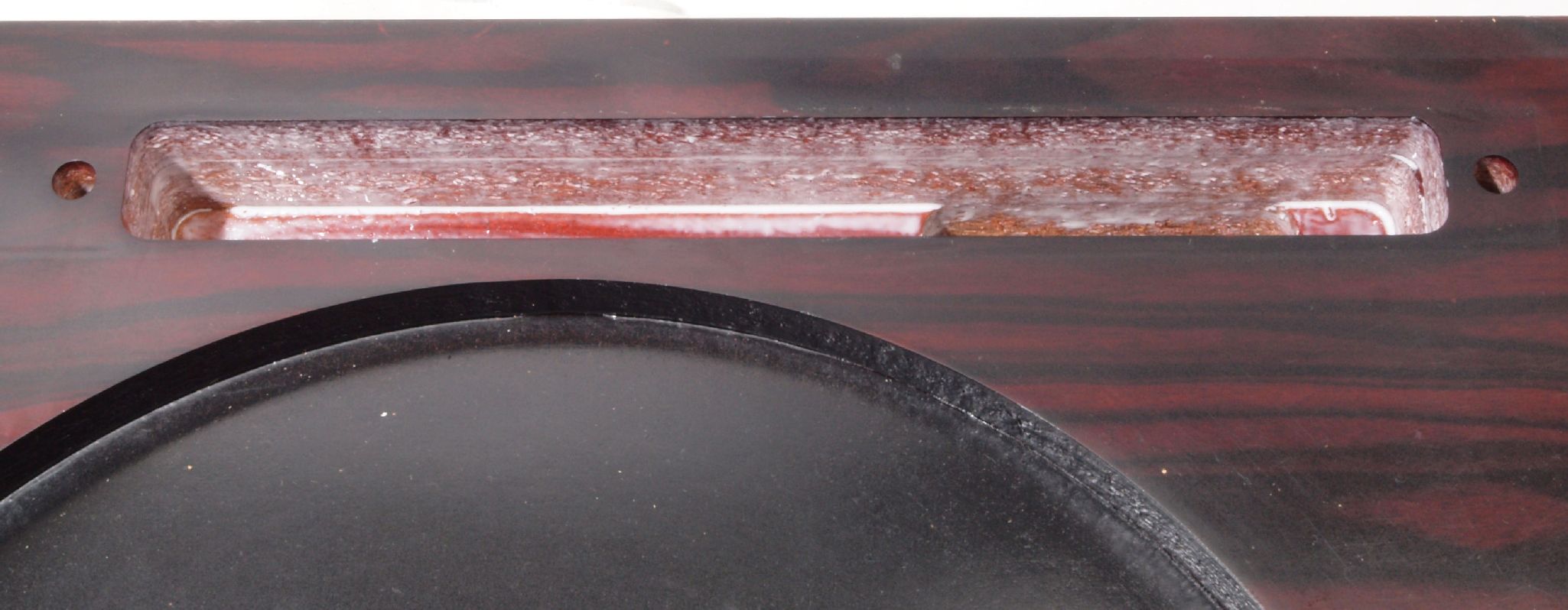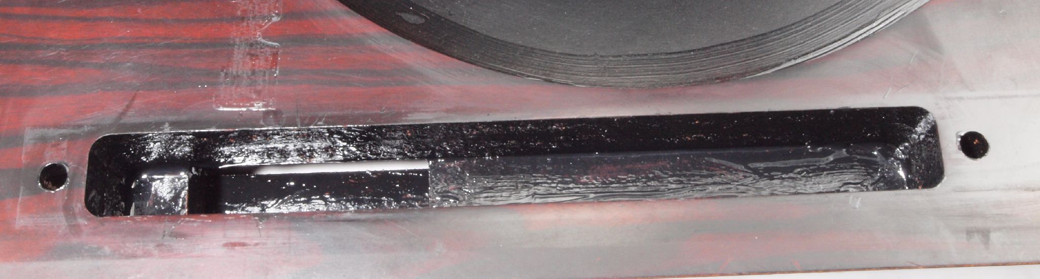 | W25. 修理中 モーター取付穴、タンテーブル軸受取付穴、反対側。 圧縮材にボンドを染みこませる。 | ||||||||||||||||||||||||||||||||||||||||||||||||||||