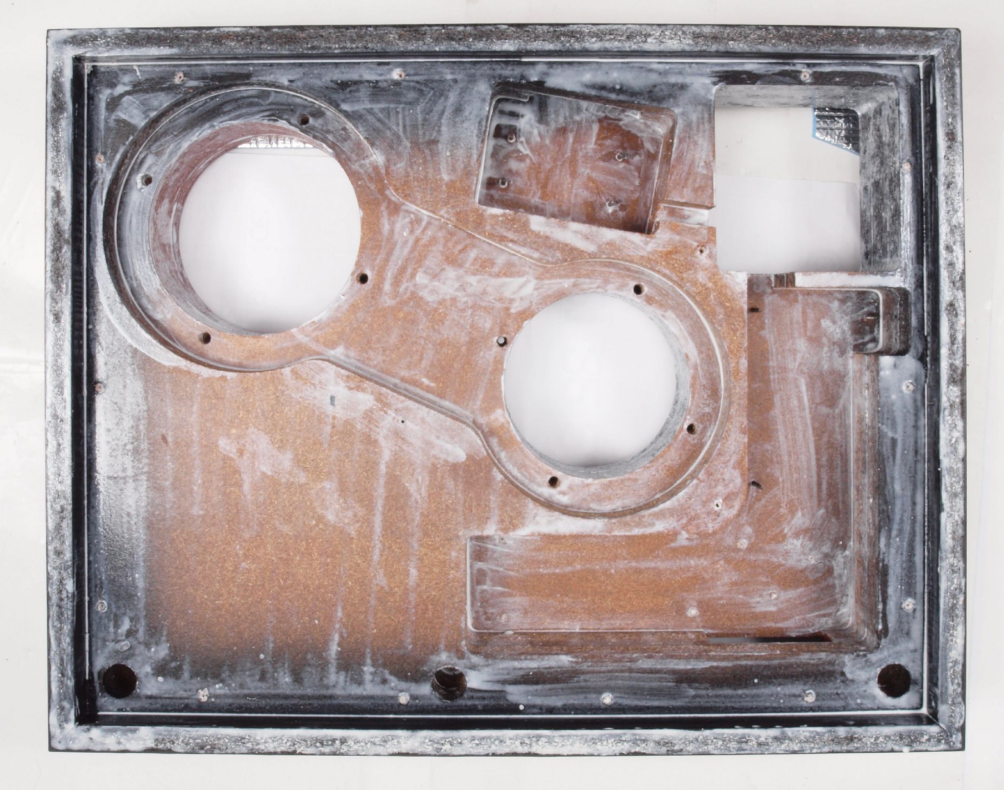 | WC6. 修理後 下蓋のトランスカバー取り付穴、反対側。 乾燥後さらにペンキを塗る。 | ||||||||||||||||||||||||||||||||||||||||||||||||||||