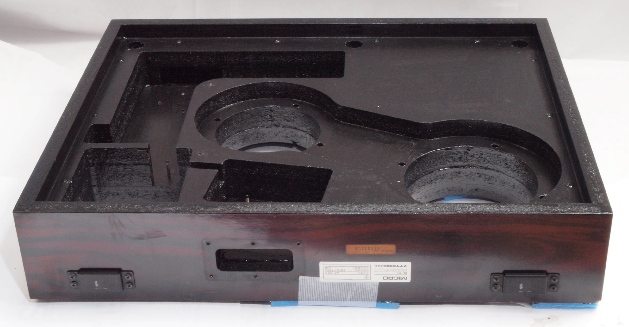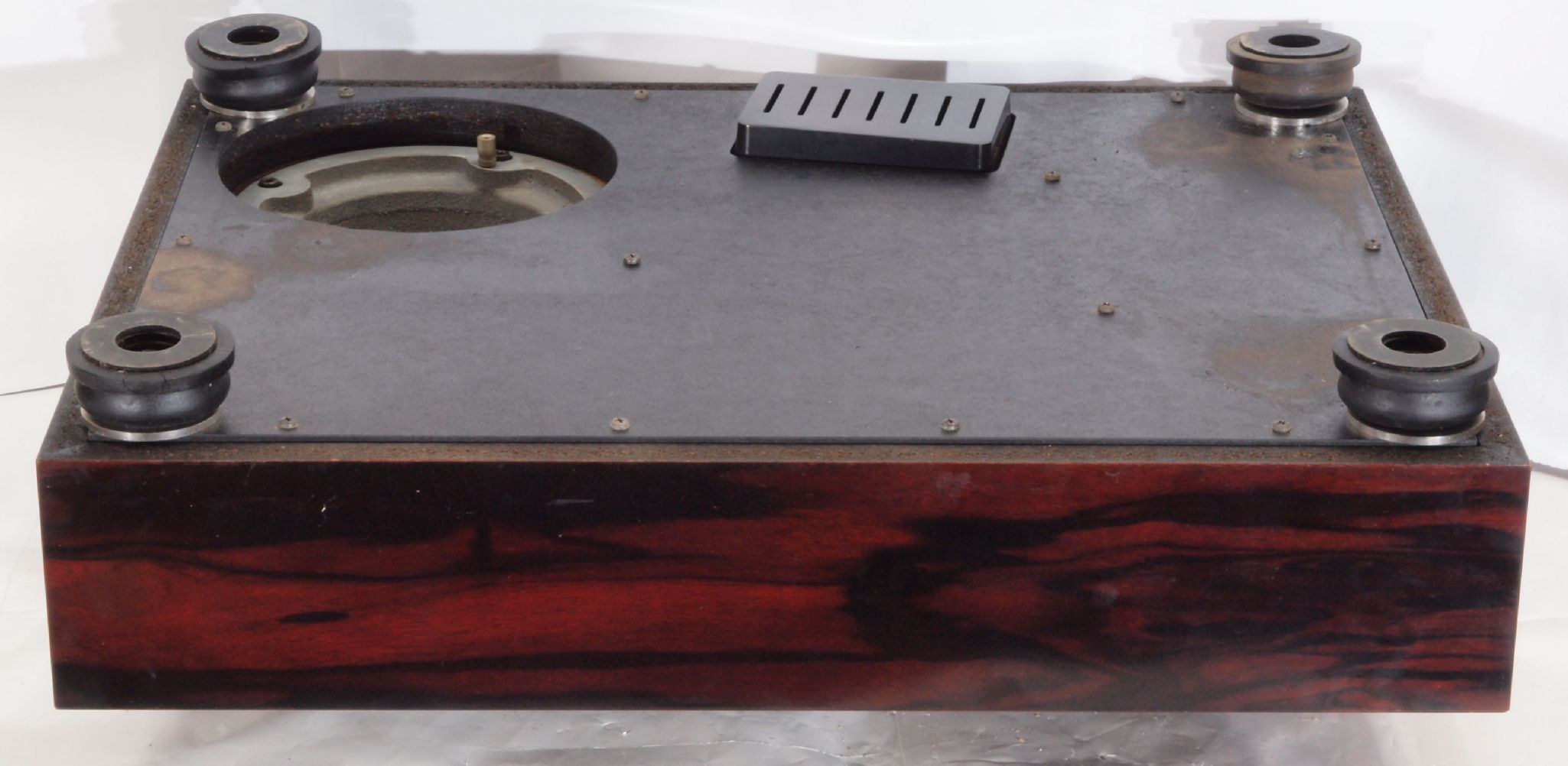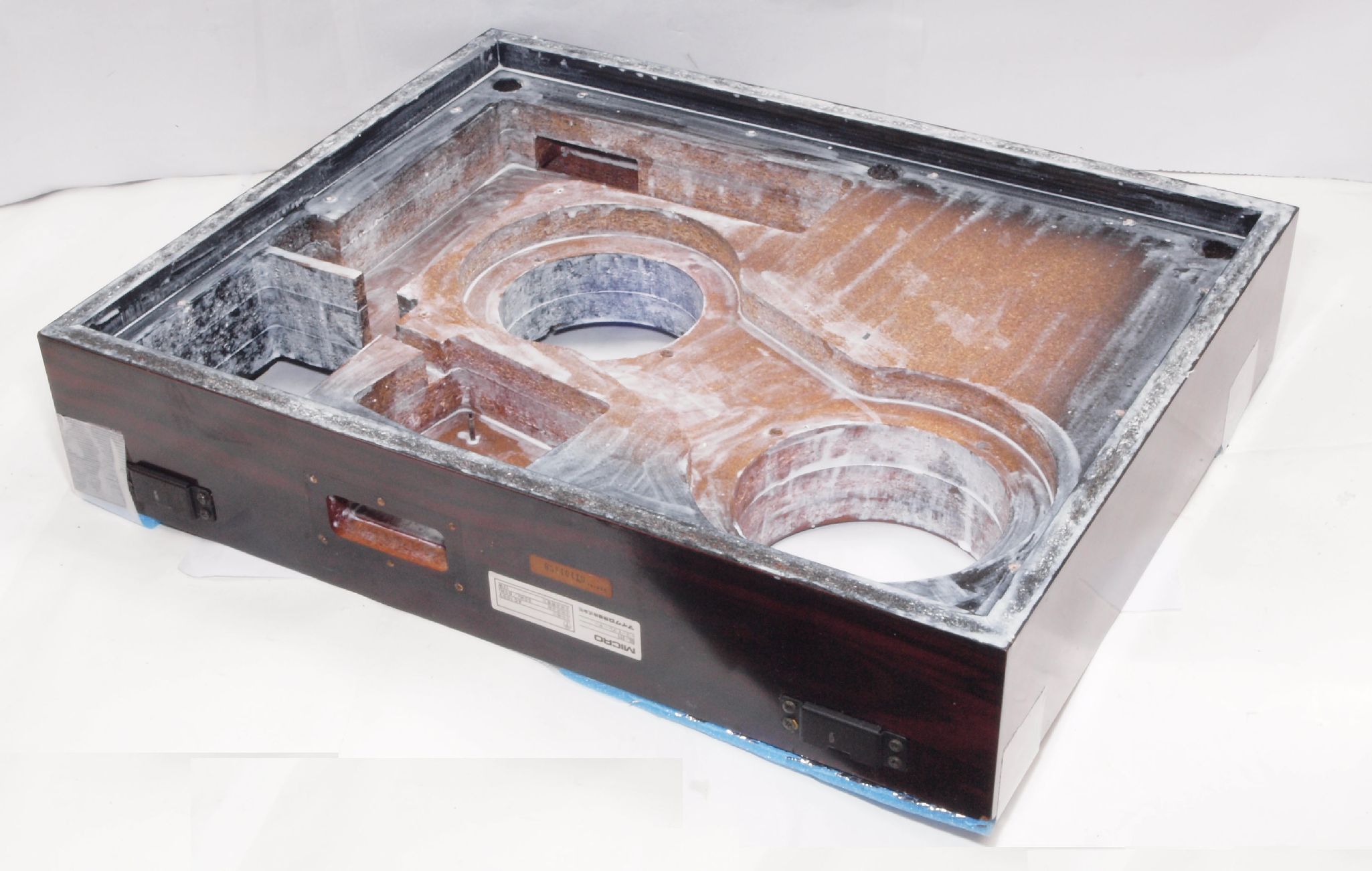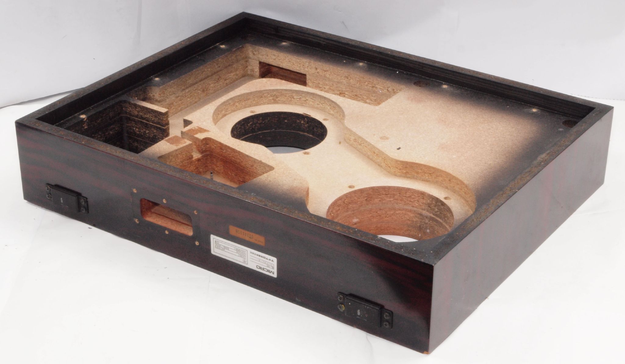| W. 下蓋及び本体木部 修理状況。 画像をクリックすると、大きく(横幅2050ドット)表示されます。 W1. 修理前 モーター、基板、アーム架台を取り本体上から。 |