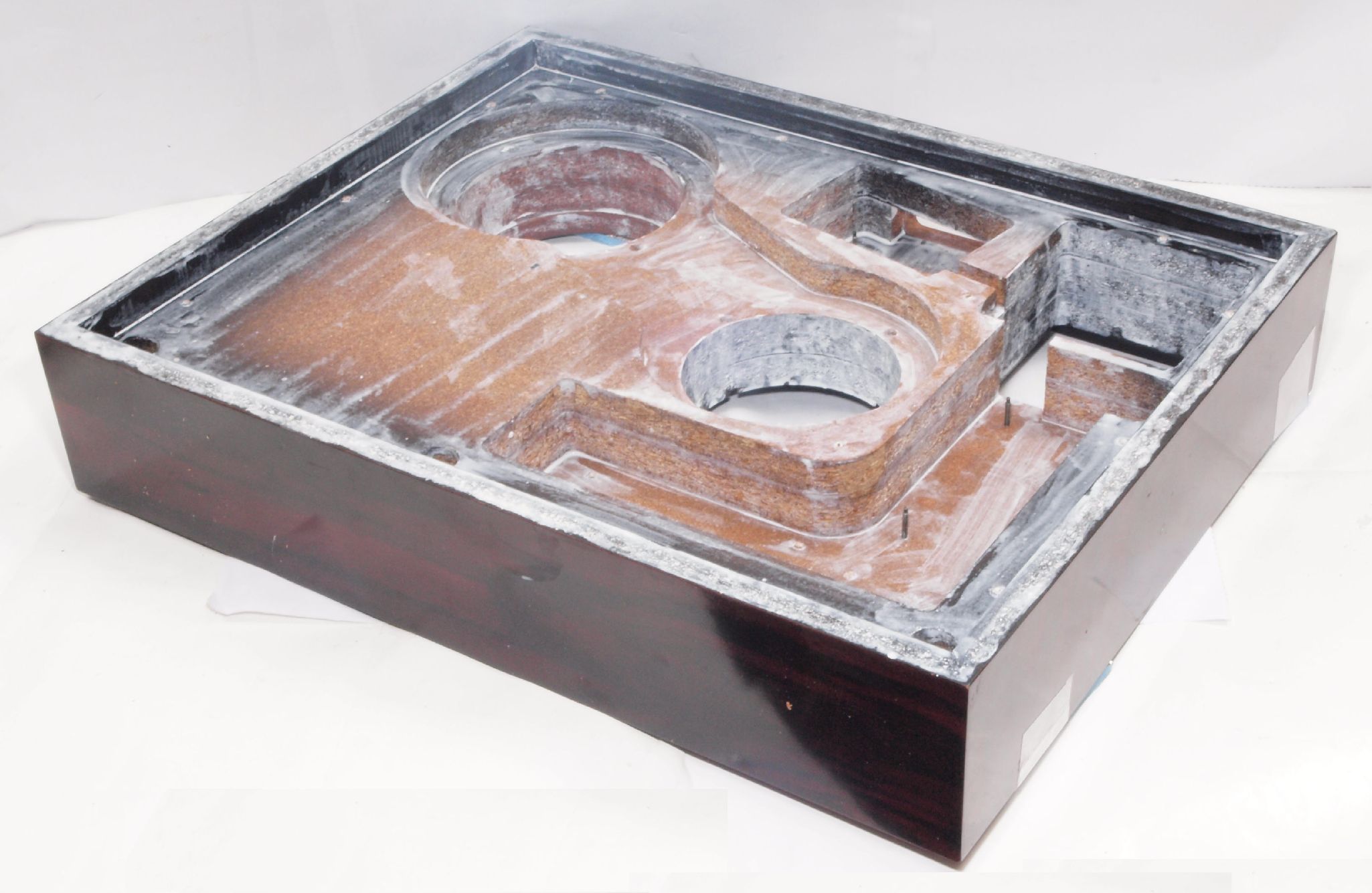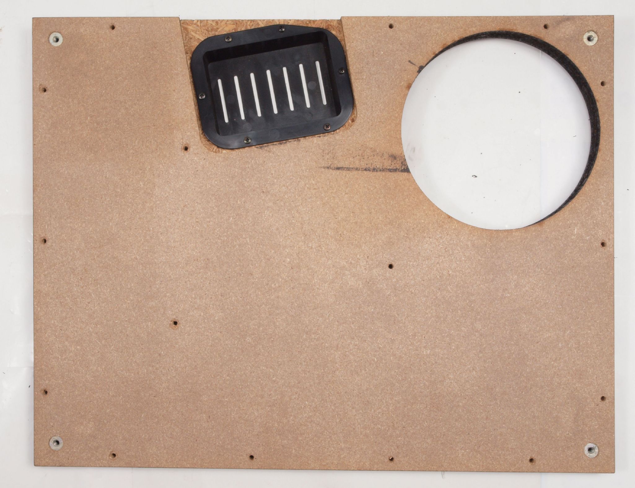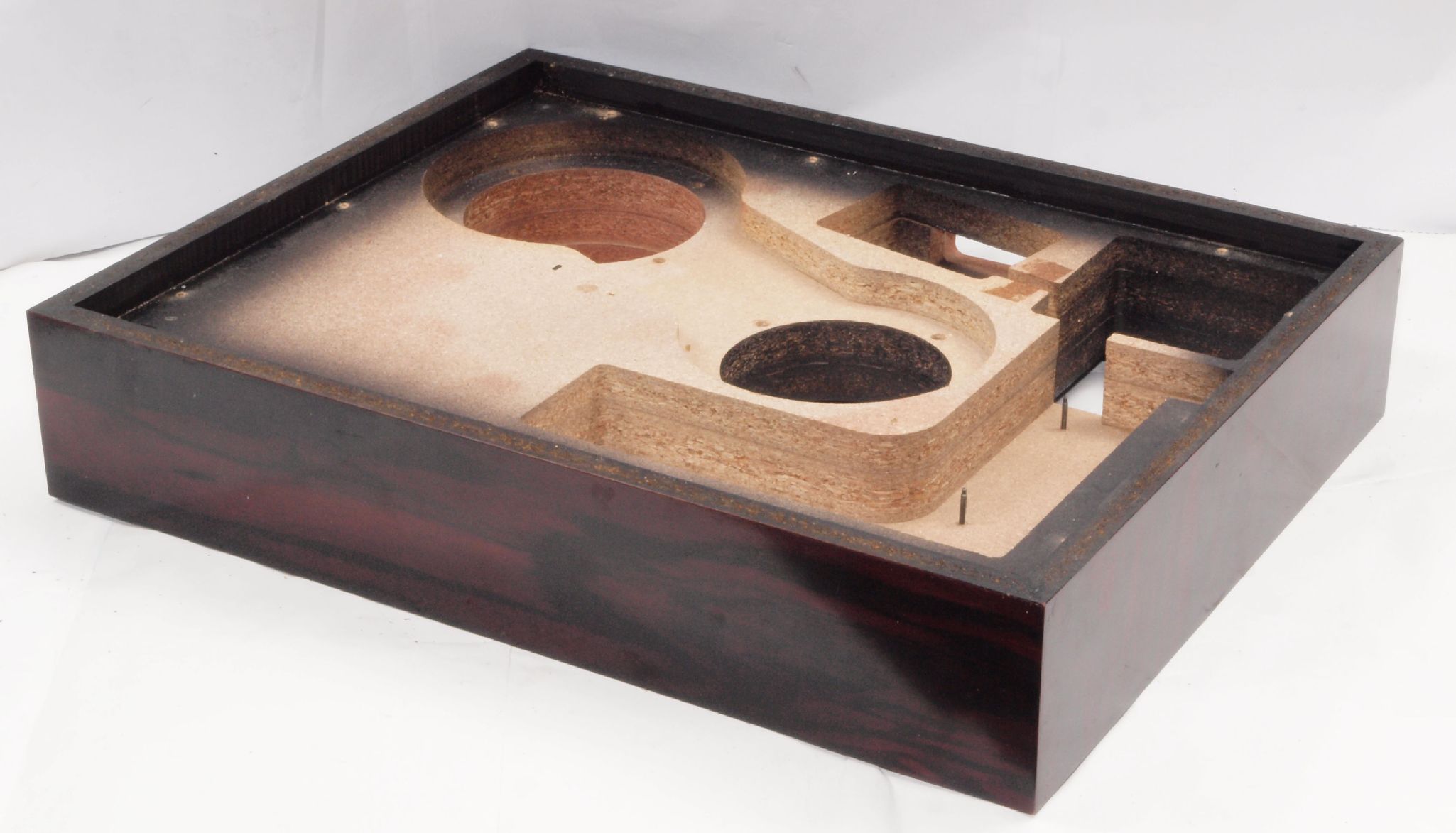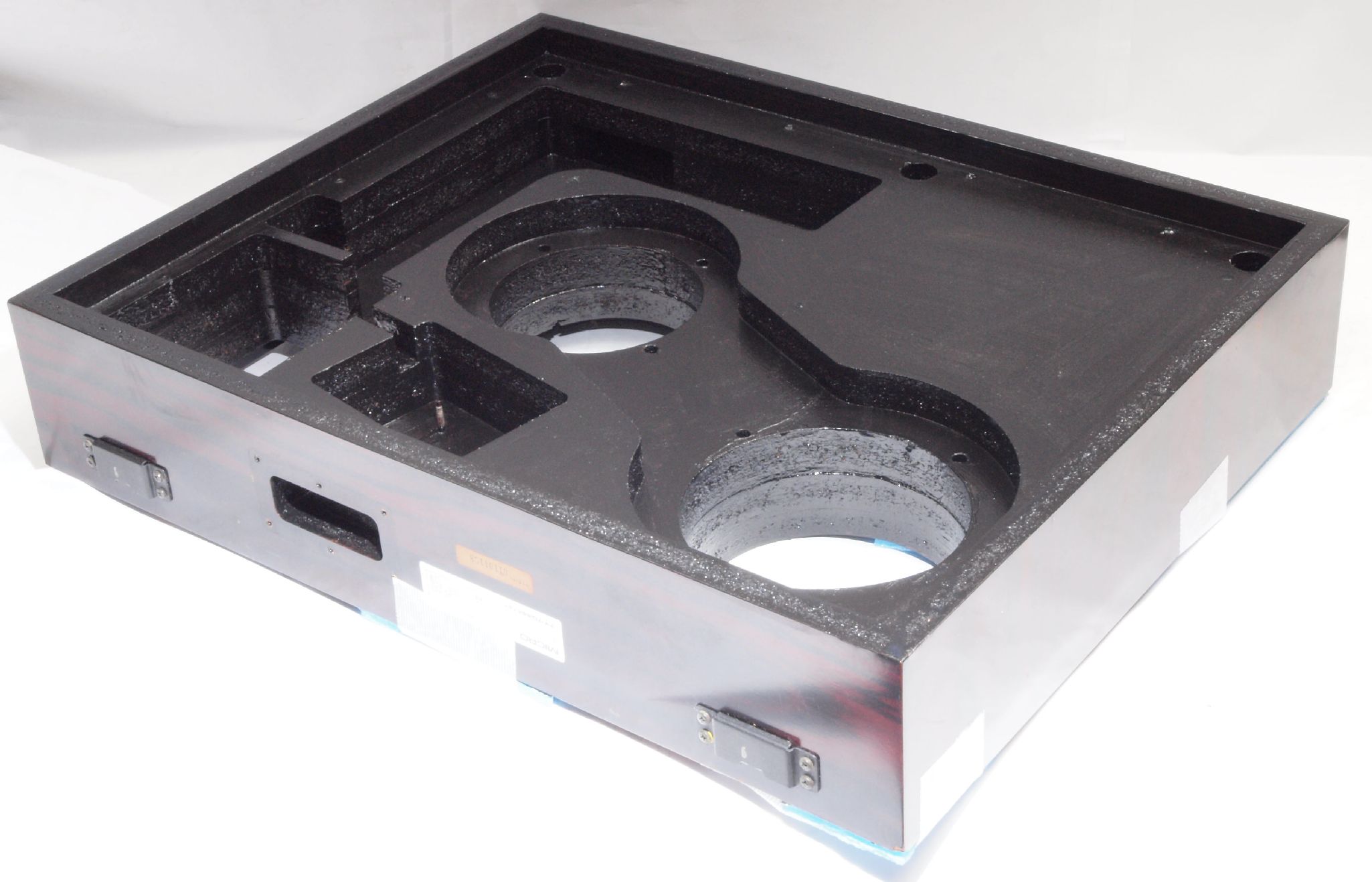 | W. 下蓋及び本体木部 修理状況。 画像をクリックすると、大きく(横幅2050ドット)表示されます。 W1. 修理前 モーター、基板、アーム架台を取り本体上から。 |