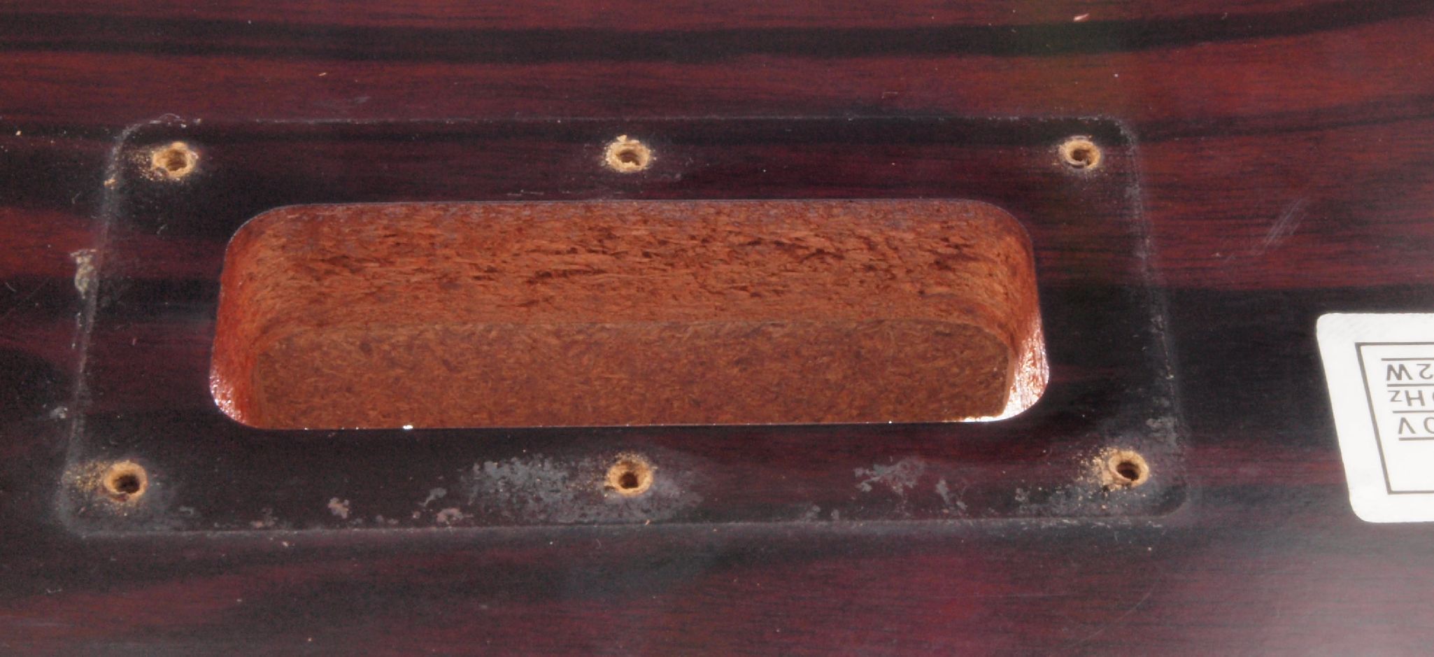 | W82. 修理中 下蓋表右後ろ角。圧縮材の接着材が劣化し膨れている。 | ||||||||||||||||||||||||||||||||||||||||||||||||||||