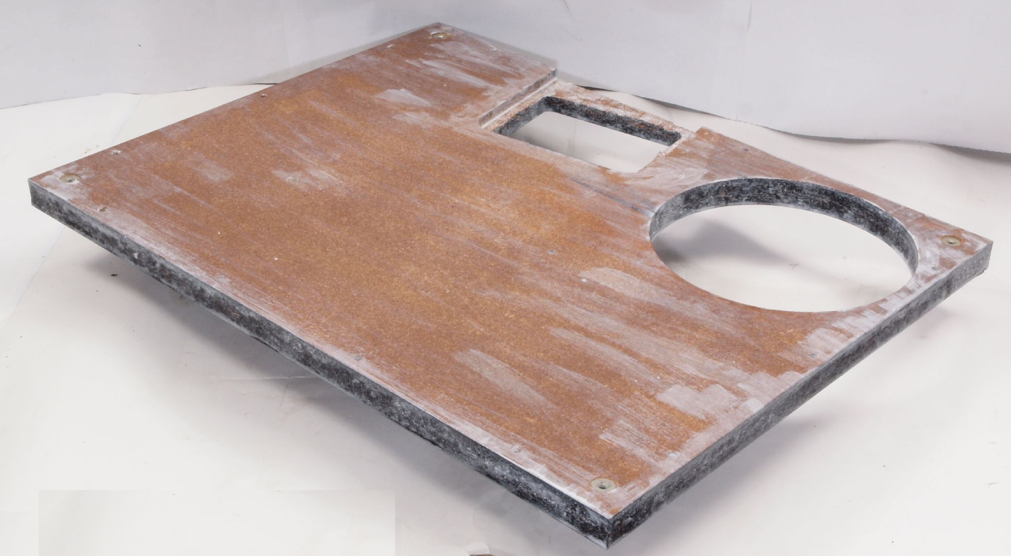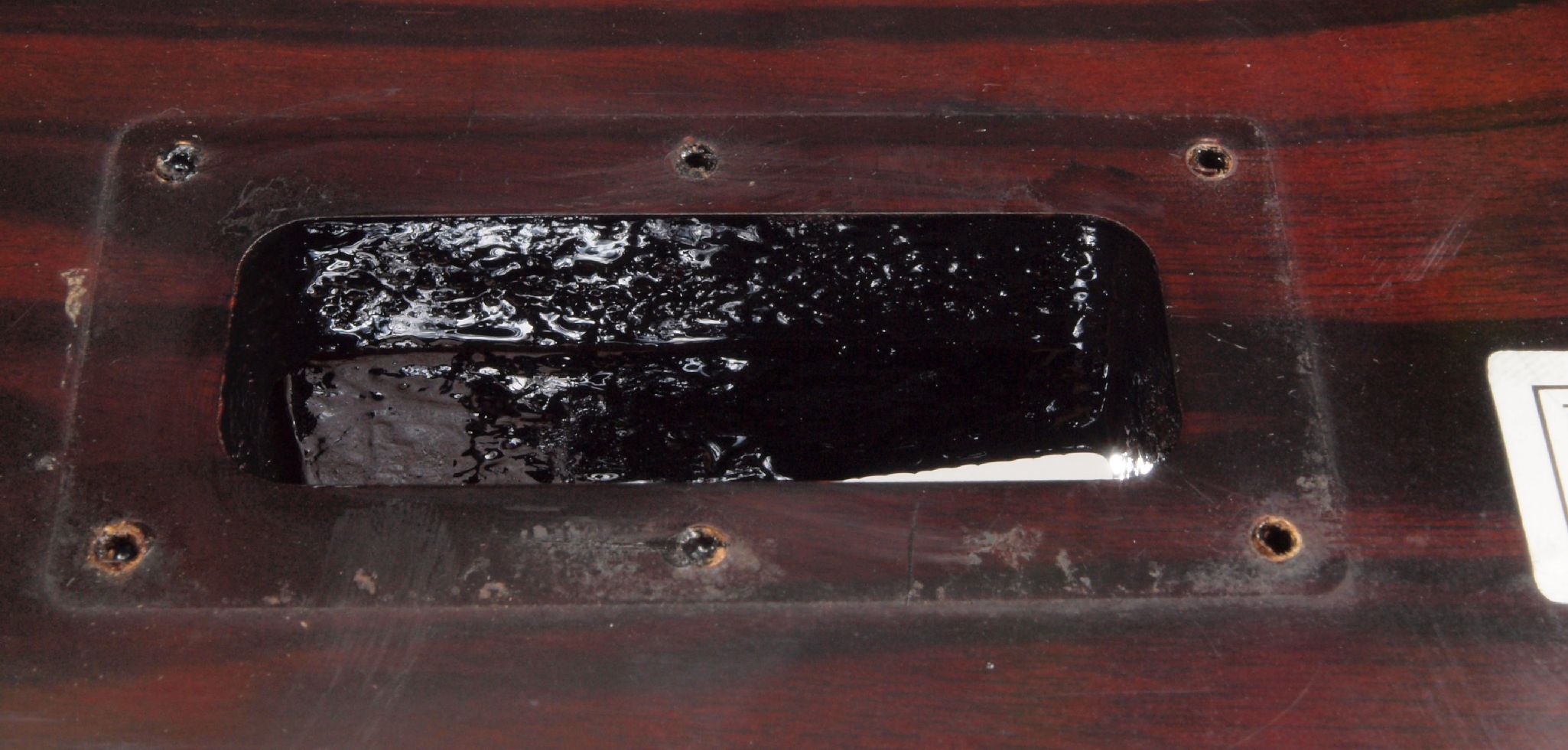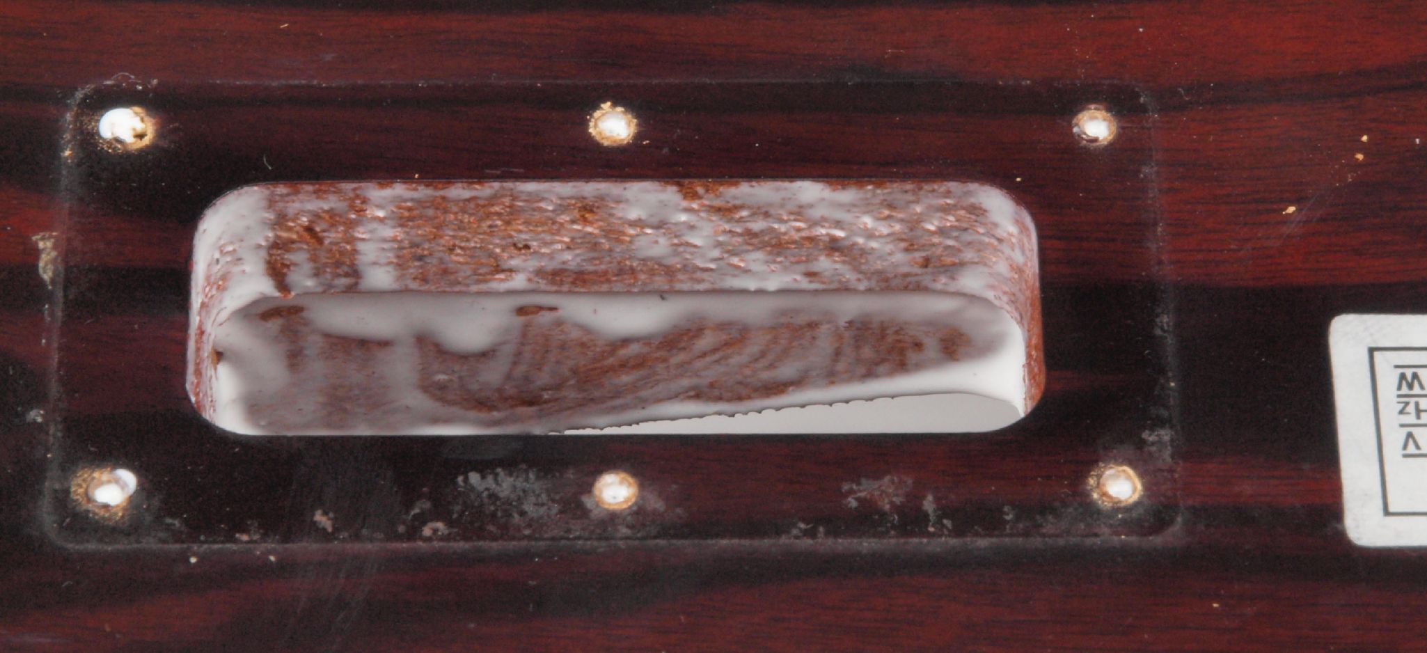 | W83. 修理中 下蓋表左後ろ角。圧縮材の接着材が劣化し膨れている。 | ||||||||||||||||||||||||||||||||||||||||||||||||||||