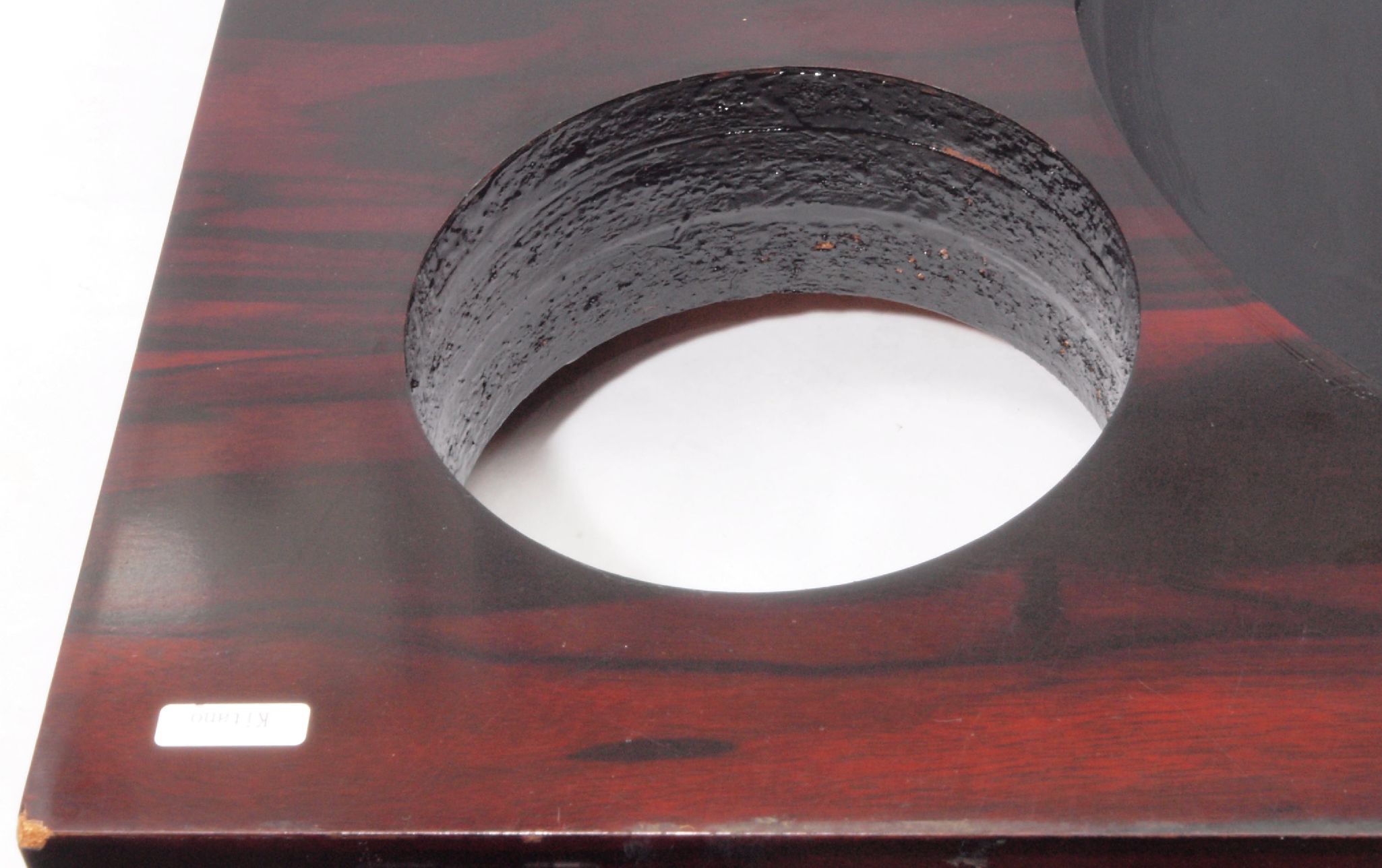 | WB3. 修理後 下蓋のアーム取り付穴。 乾燥後さらにペンキを塗る。 | ||||||||||||||||||||||||||||||||||||||||||||||||||||