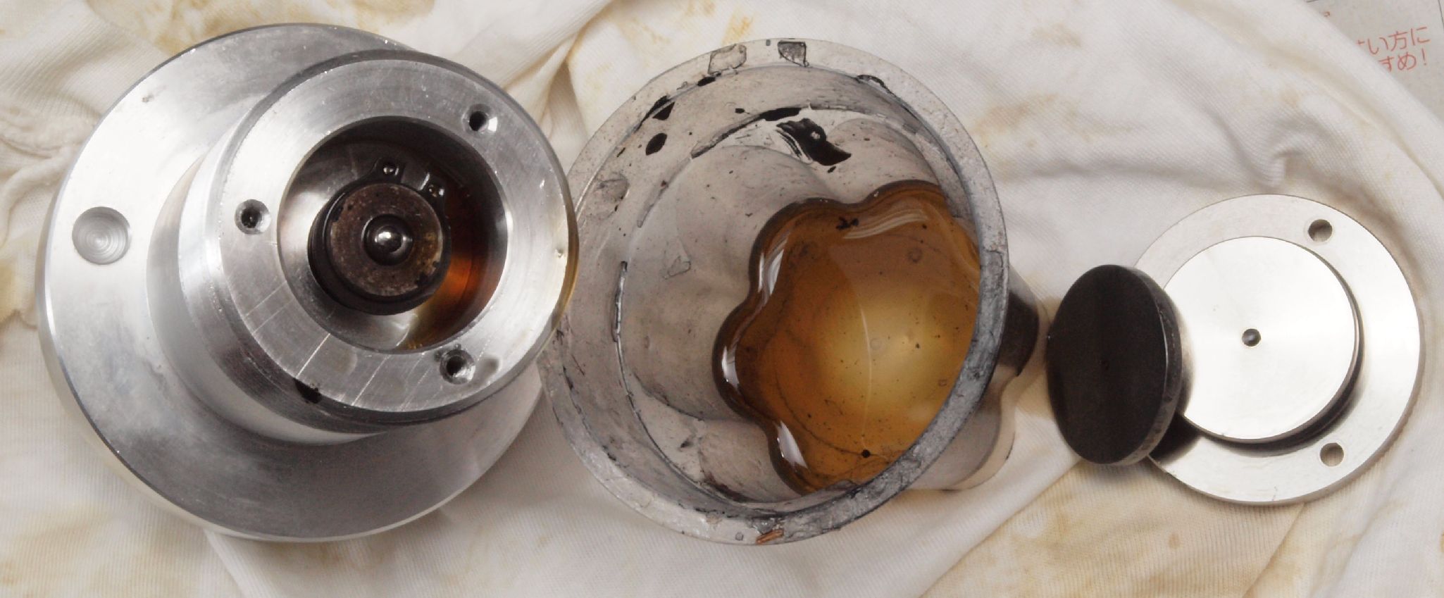 | CC2. 修理中 タンテーブル軸を取り出し分解。 経年劣化で真っ黒。 | ||||||||||||||||||||||||||||||||||||||||||||||||||||