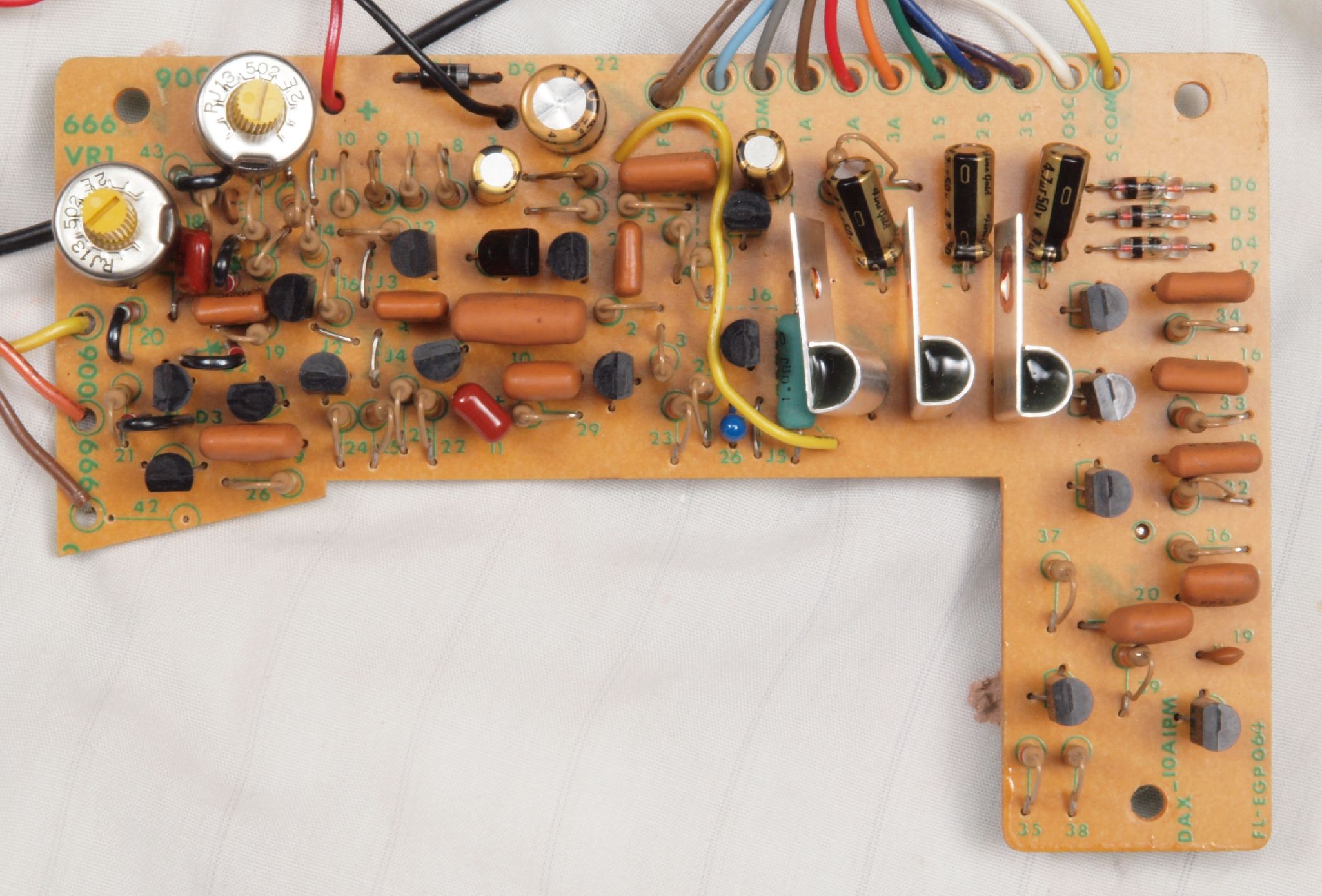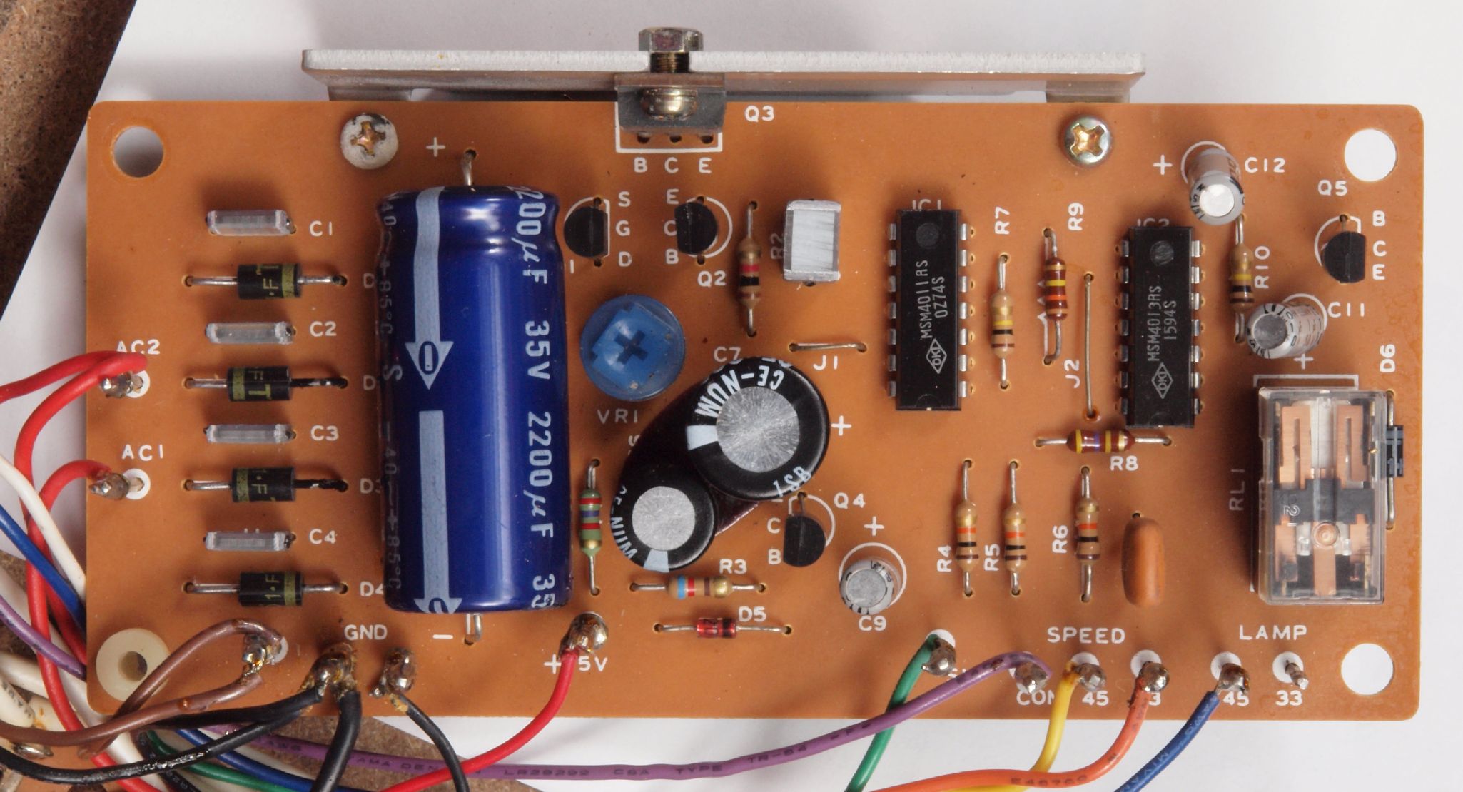 | C24. 修理後 電源・33/45切替基板 半固定VR1個、電解コンデンサー6個、製造中止で入手難のリレー1個交換 | ||||||||||||||||||||||||||||||||||||||||||||||||||||