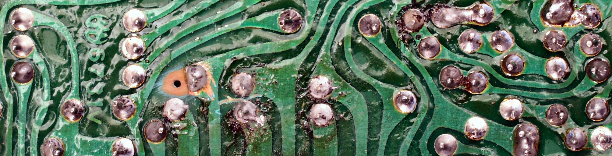 | C132. 修理前 制御基板裏、基板銅箔剥離、半田不良ケ所2。 |