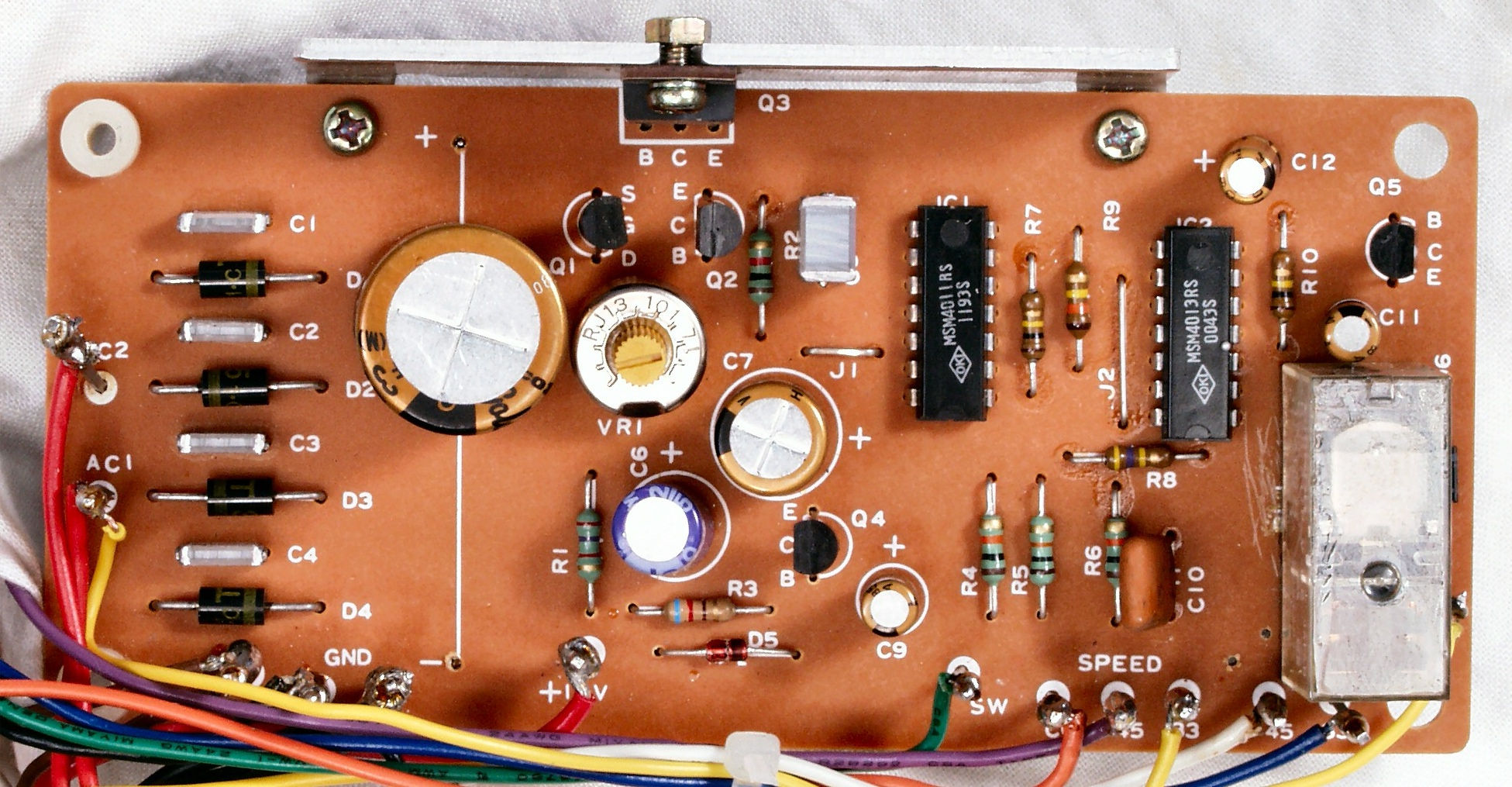 | C12. 修理後 制御基板 半固定VR2個、電解コンデンサー3個、フイルムコンデンサー1個交換 |