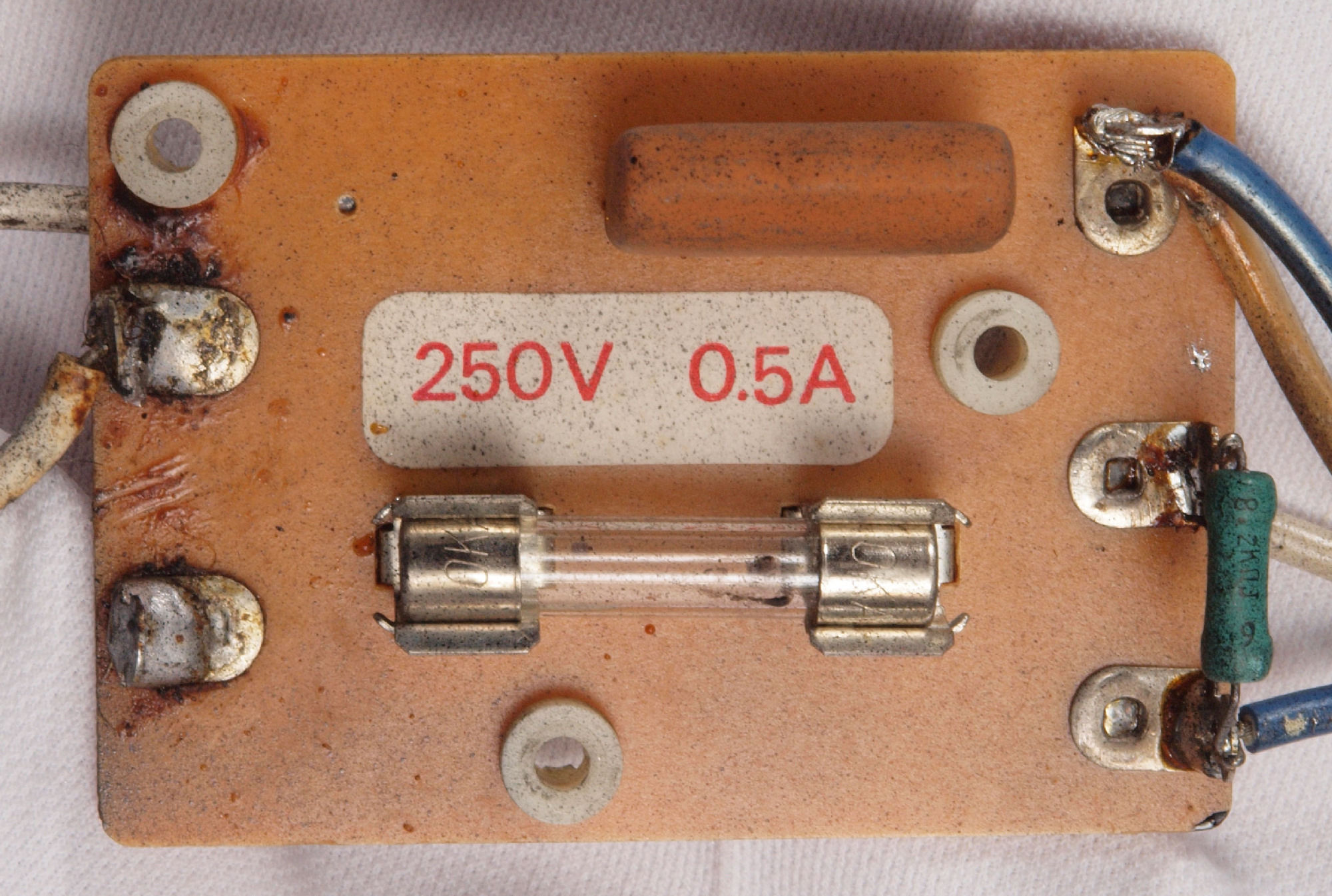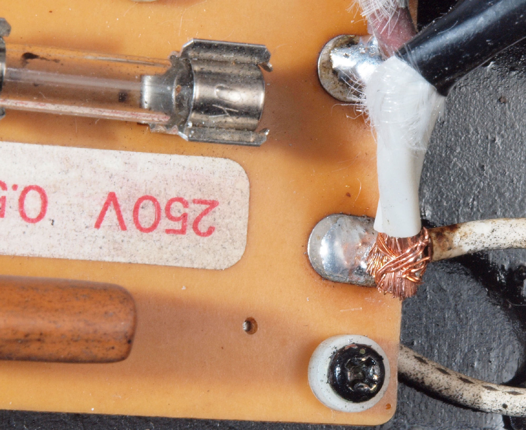 | C52. 修理後 圧縮板にボンドを塗って固めている、フューズ取付圧縮板。 | ||||||||||||
