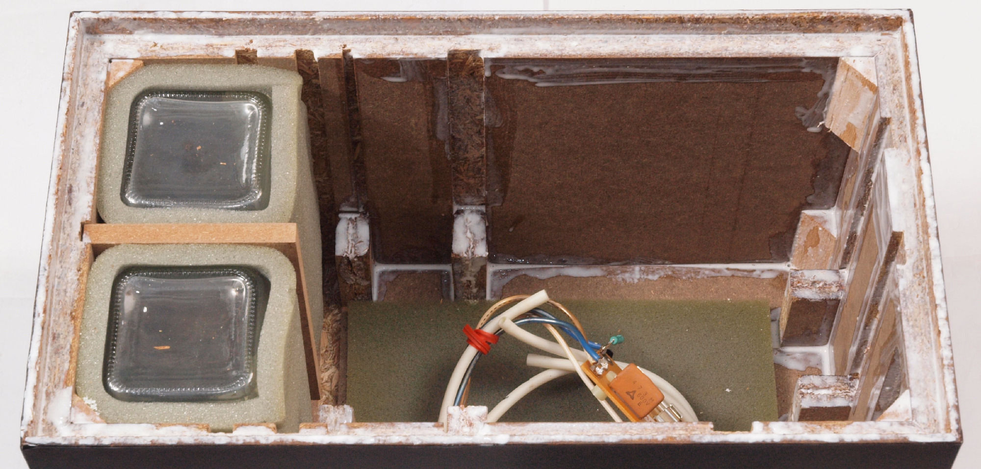 | C41. 修理前 接着材が劣化した木箱圧縮板右側。 | ||||||||||||