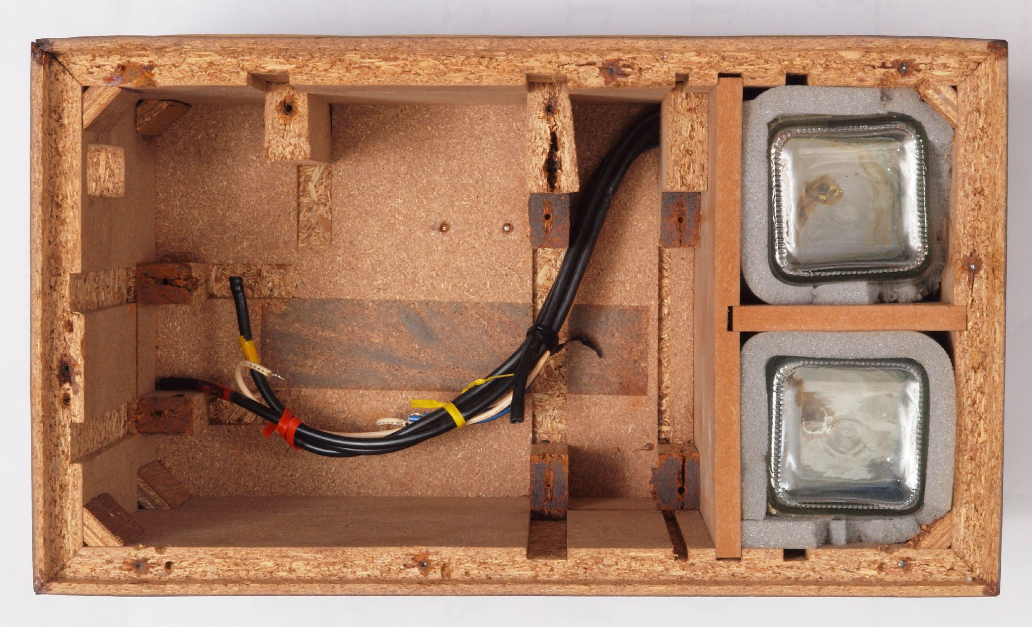 | C41. 修理前 接着材が劣化した木箱圧縮板右側。 | ||||||||||||