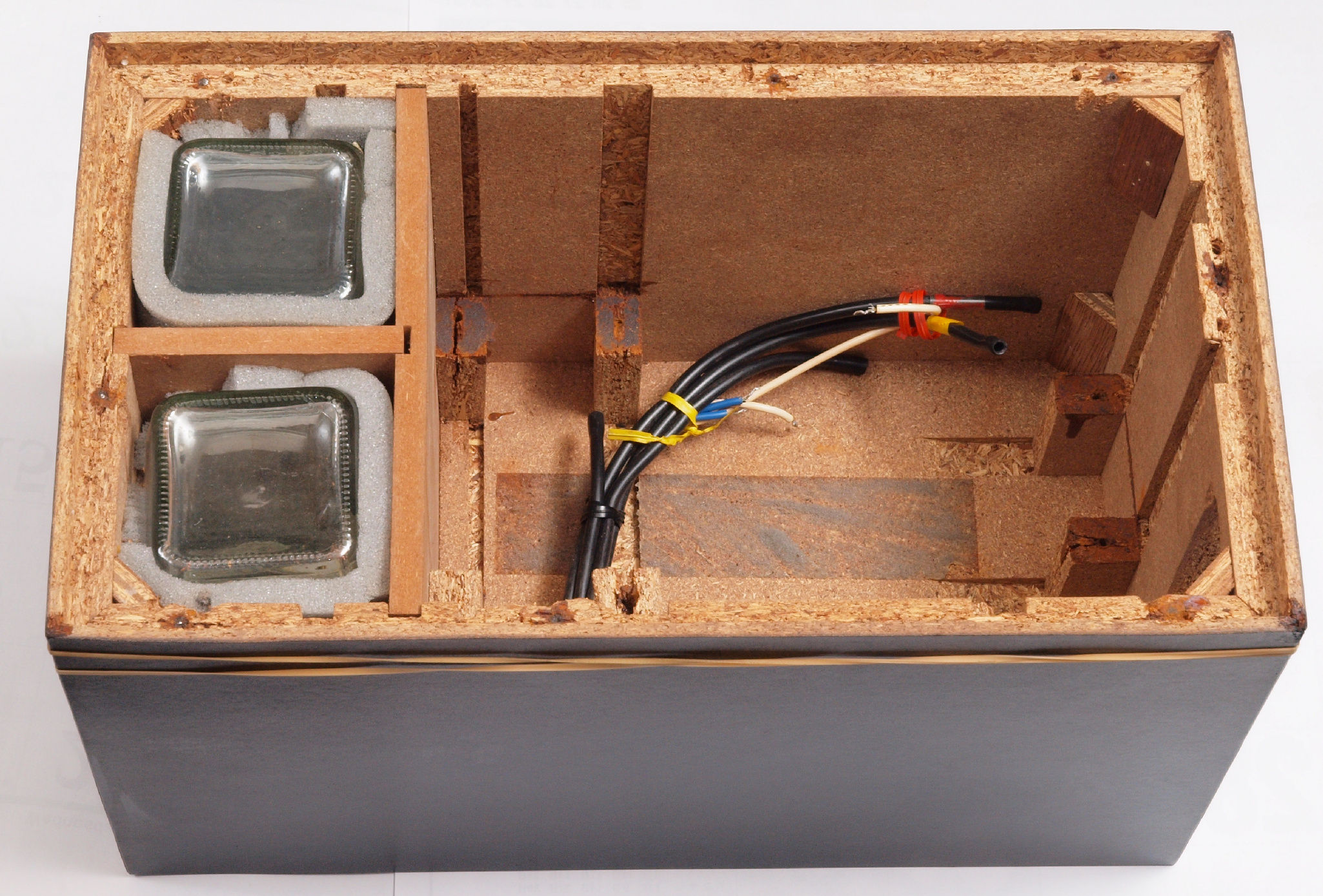 | C44. 修理前 接着材が劣化した木箱圧縮板左側。 | ||||||||||||