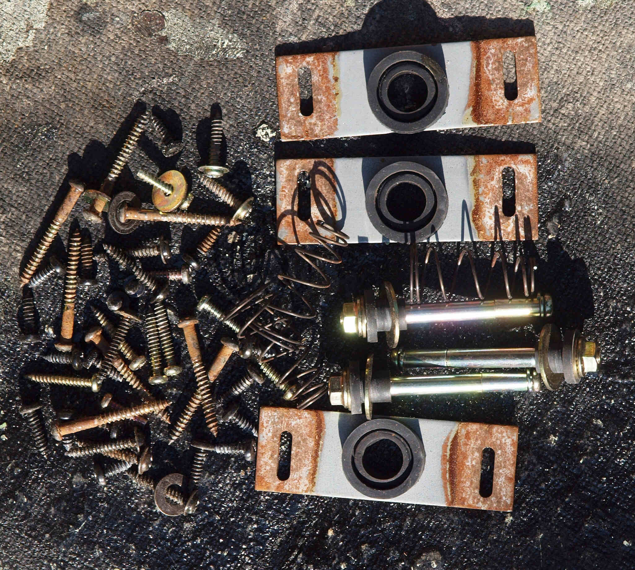 | CB1. 修理(塗装)前 ポンプ取り付け金具、各種止めネジ類。 | ||||||||||||