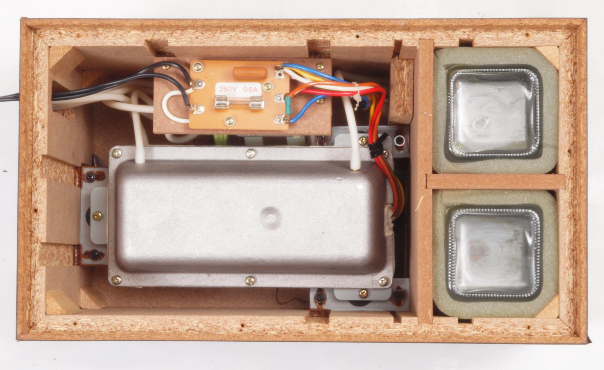 C72. 修理中 ヒューズ取付圧縮板表。 圧縮板にボンドを塗って固めている、ヒューズ取付圧縮板表。 |