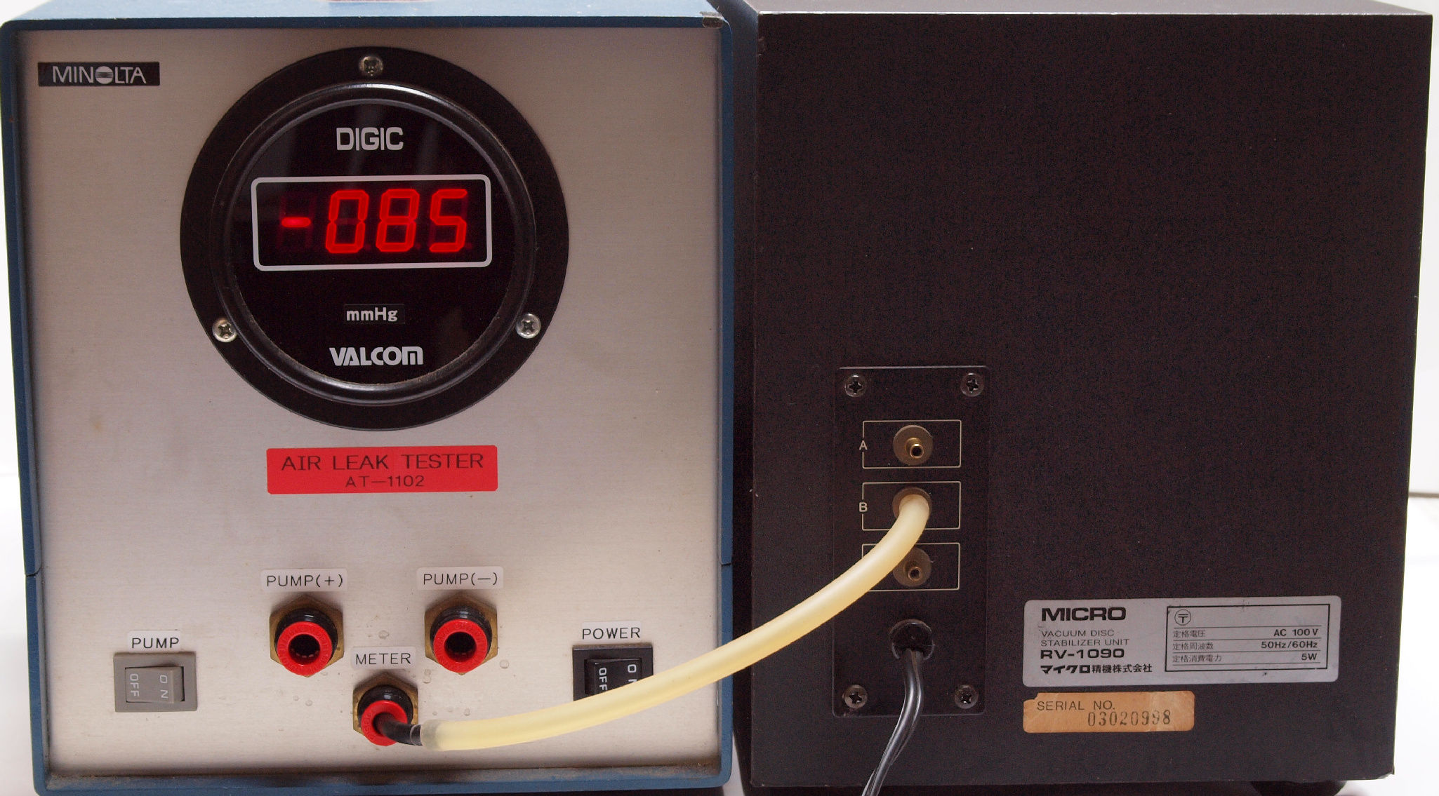 | E2. 「B=吸い込」 の圧力測定。 Aより低いのは圧力調整バイパスが有る為。 |