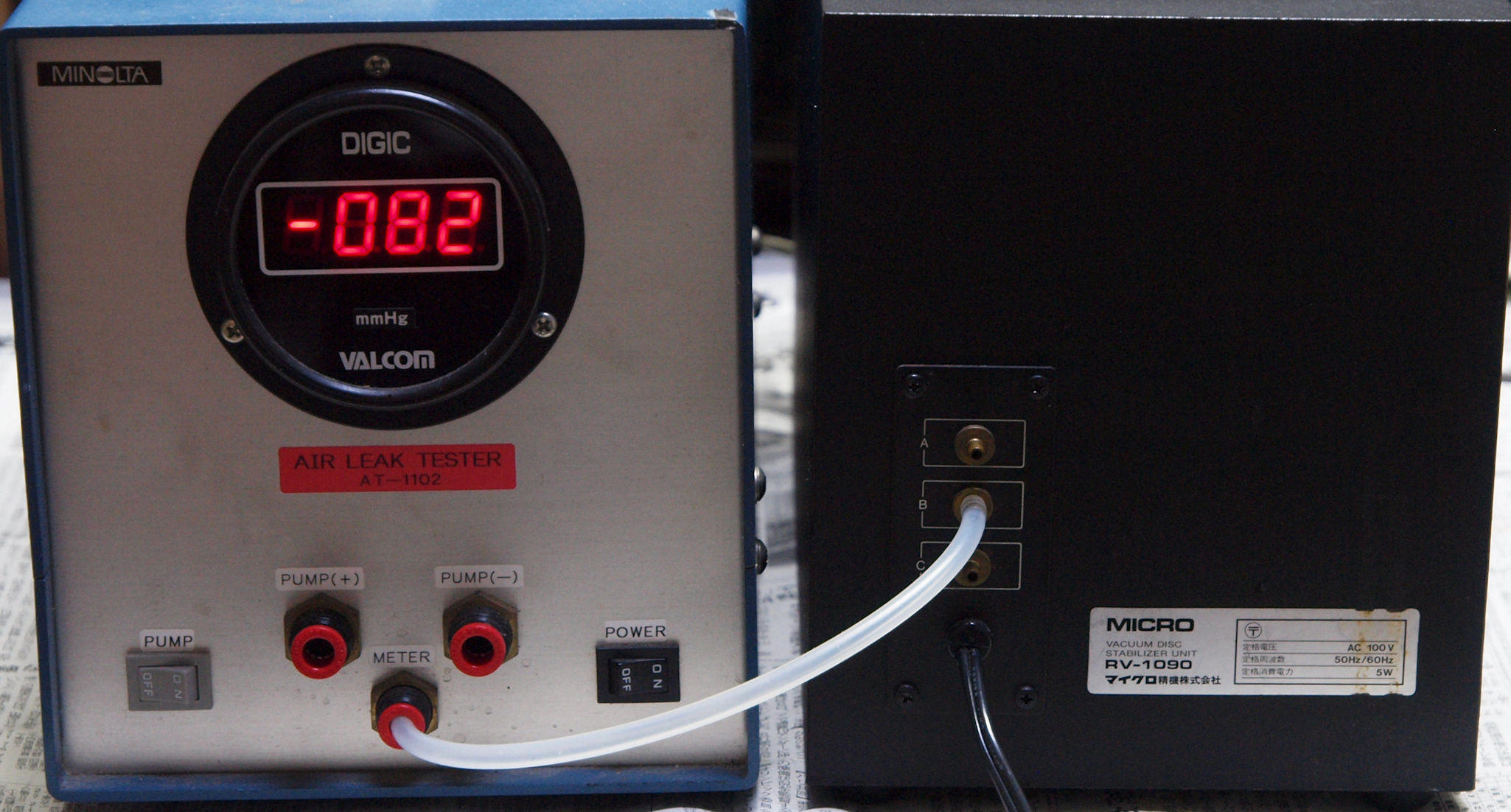 | E2. 「B=吸い込」 の圧力測定。 Aより低いのは圧力調整バイパスが有る為。 |