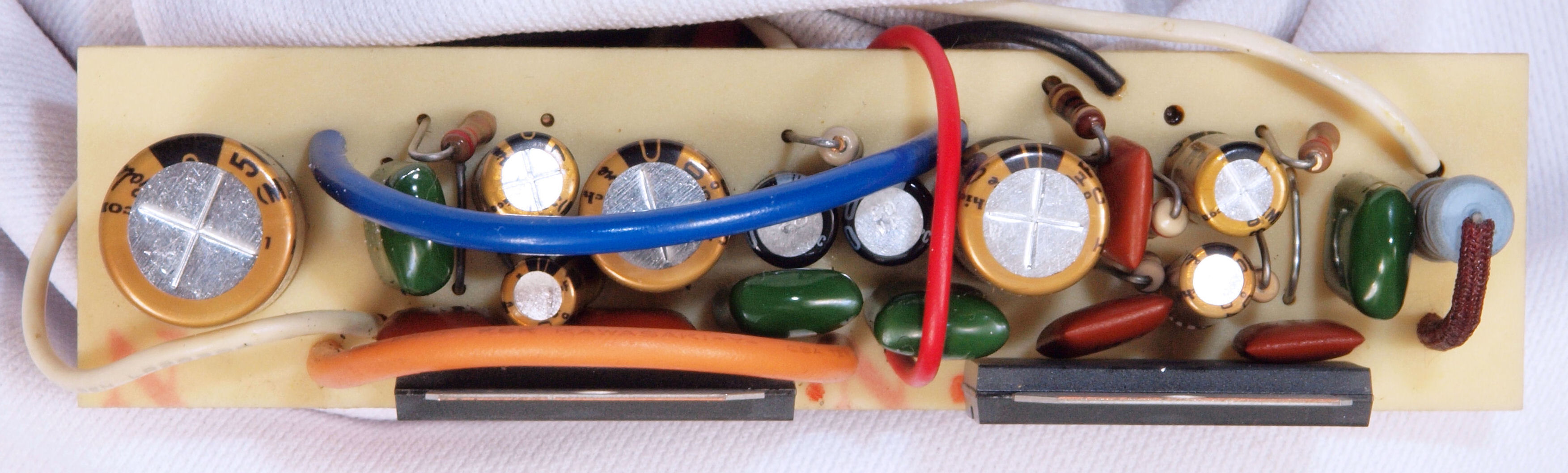 | C12 .修理後 電源部整流基板、整流ダイオードブリッジ1個、電解コンデンサー4個、ダイオード1個交換。 |