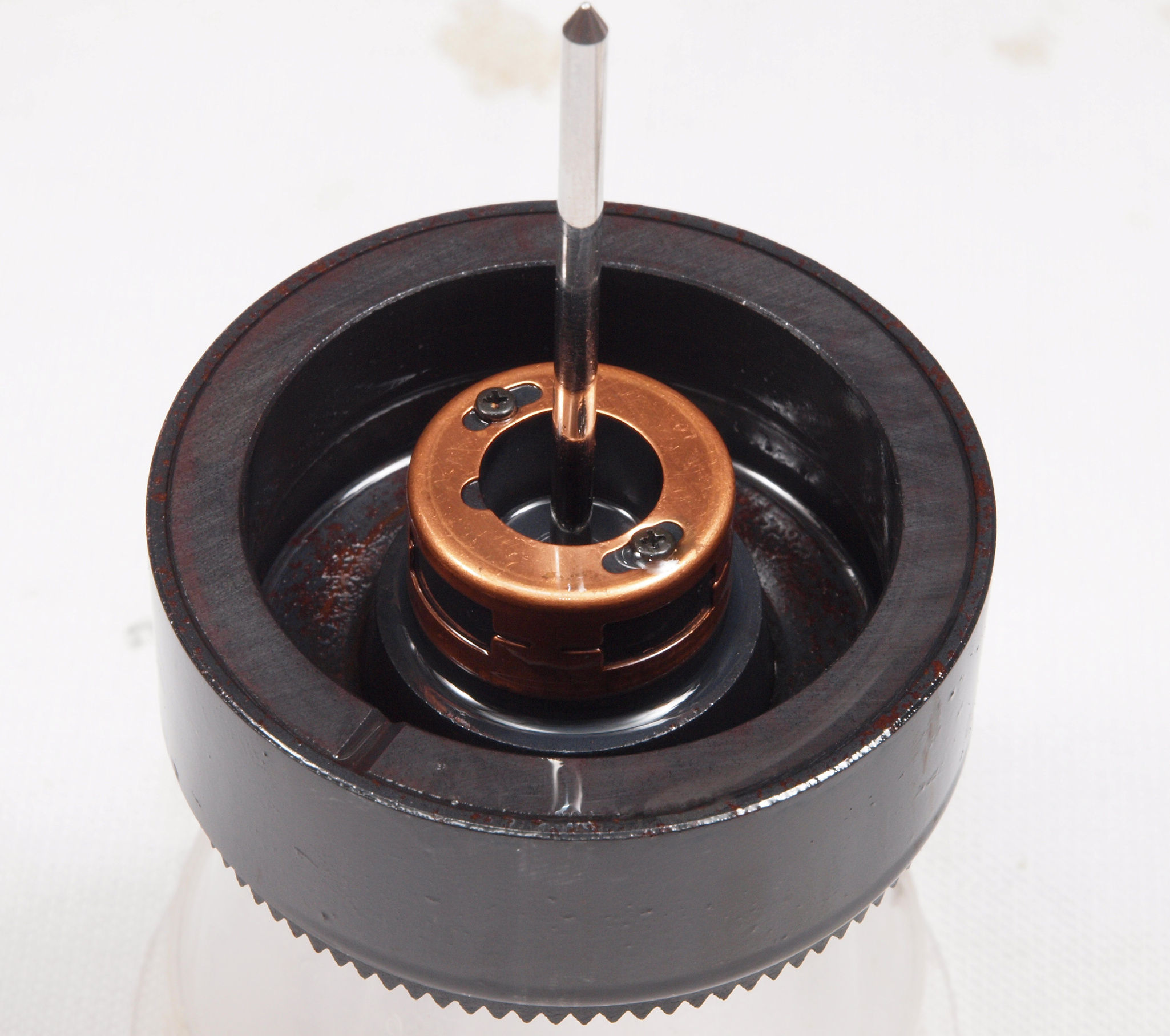 | C62. 修理中、モータ回転子上側軸受を上から見る、反対側。 油分が無し。 | ||||||||||||||||||||||||||||||||||||||||