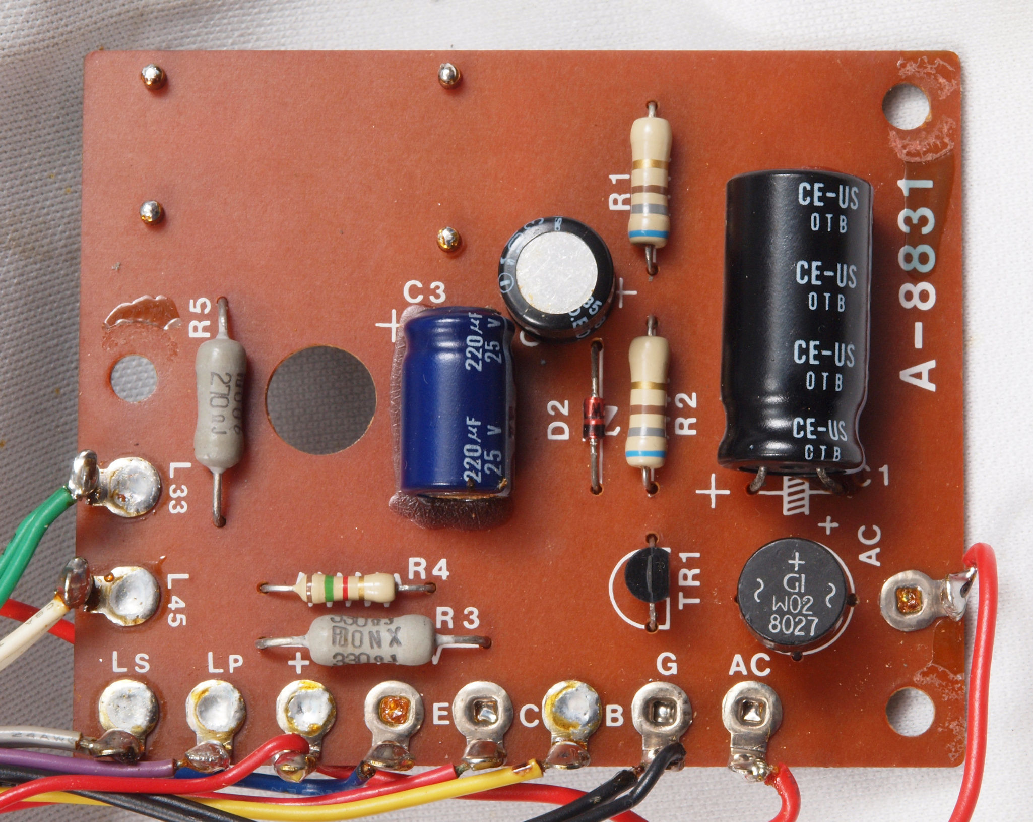 | C112. 修理前 電源・LED表示基板。 電解コンデンサー固定するトルエン溶媒の接着剤。 | ||||||||||||||||||||||||||||||||||||||||