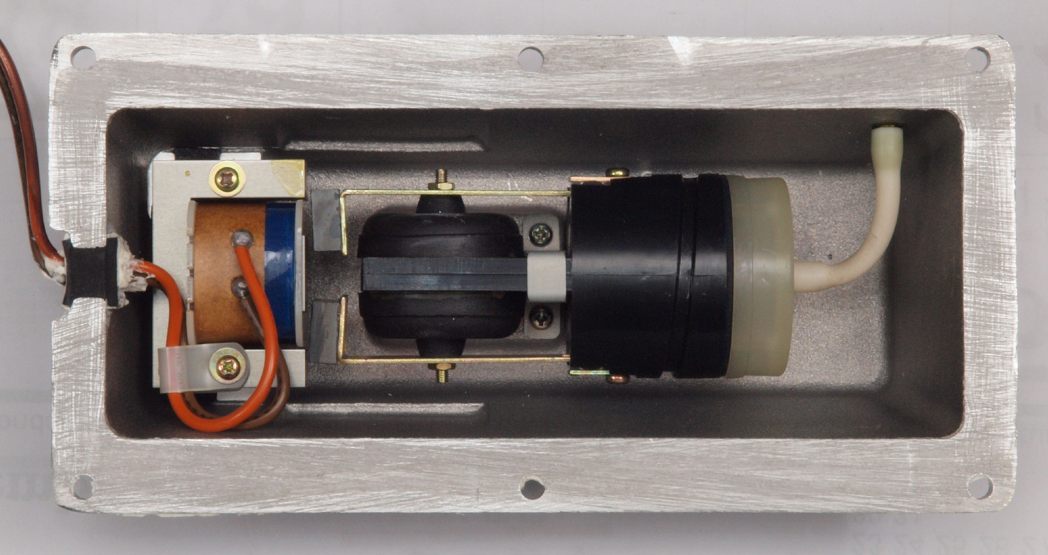 | A212. RP−1110点検中 下蓋を取り、下から見る。ポンプ取付ビスは健在、過去に修理歴無。 |