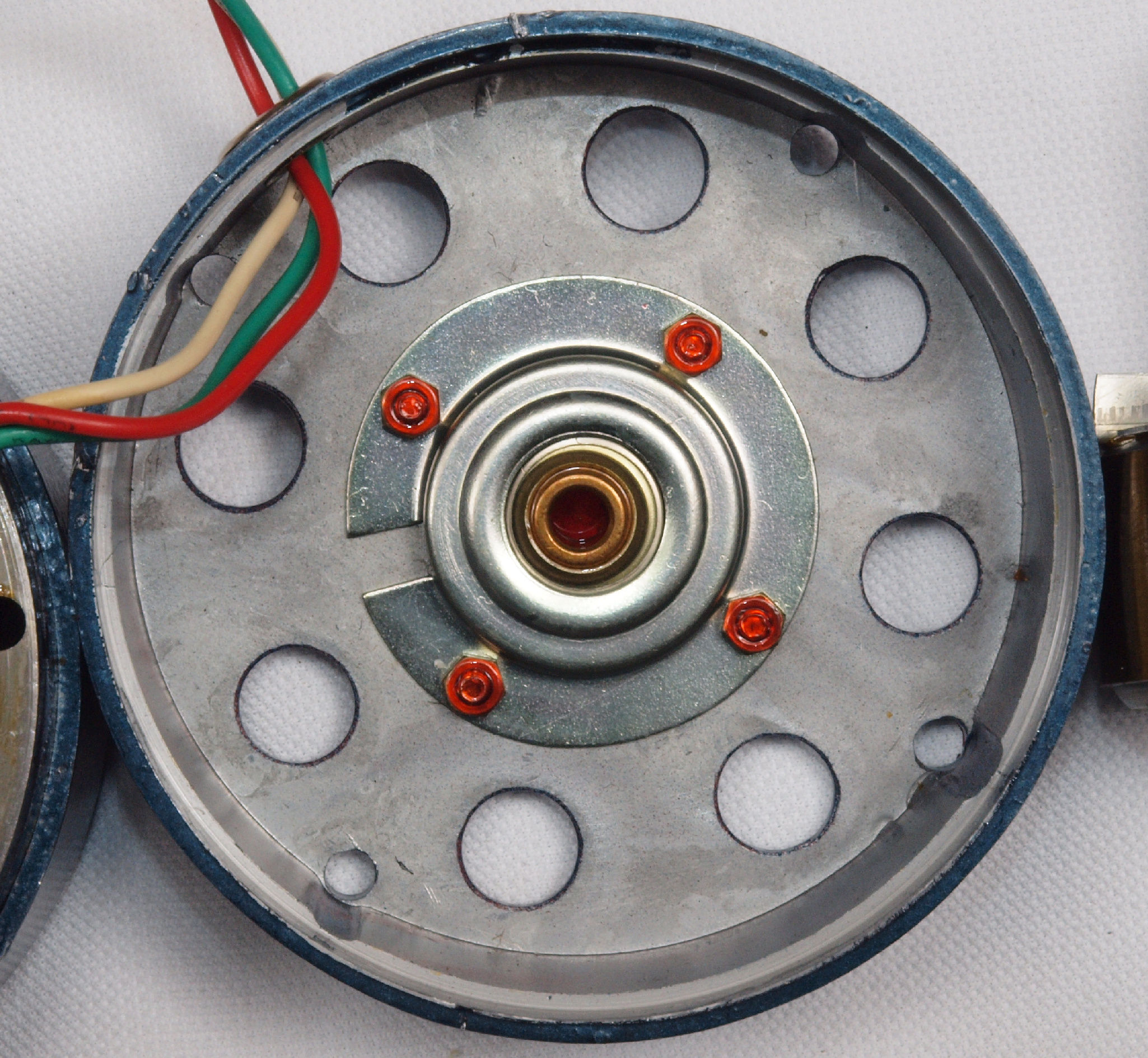 | D38. 修理中 モーター回転子(アマチュア)の軸、下側。 |