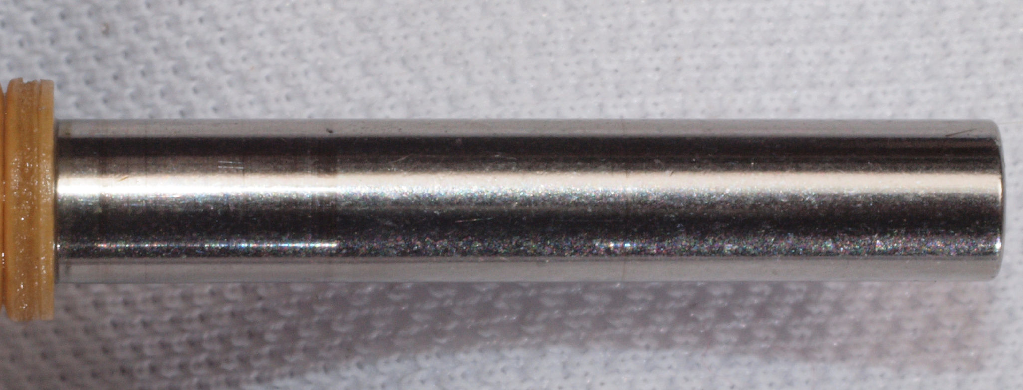 | D37. 修理中 モーター回転子(アマチュア)の軸、上側。オイル切れで焼けた跡が見える。 |