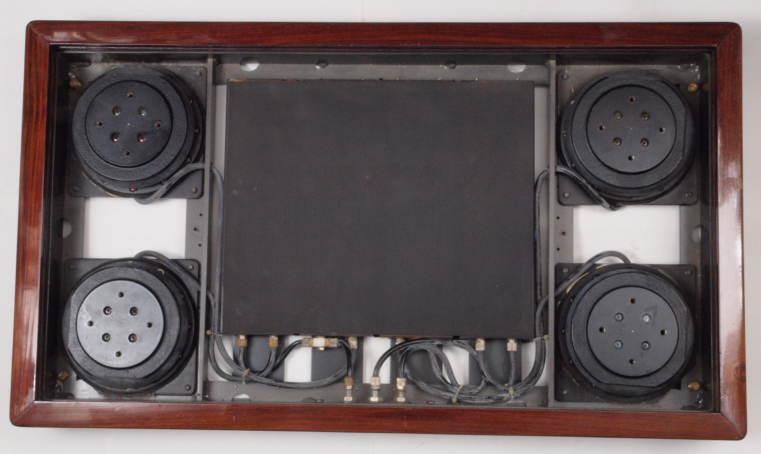 | A6. オーディオベースBA−600 修理前の点検状況。 画像をクリックすると、大きく(横幅2050ドット)表示されます。 A61. BA−600点検中 架台を外し、上から見る。 チャンバーゴムにヒビは見られない。 架台はユーザー宅へ保管。 |