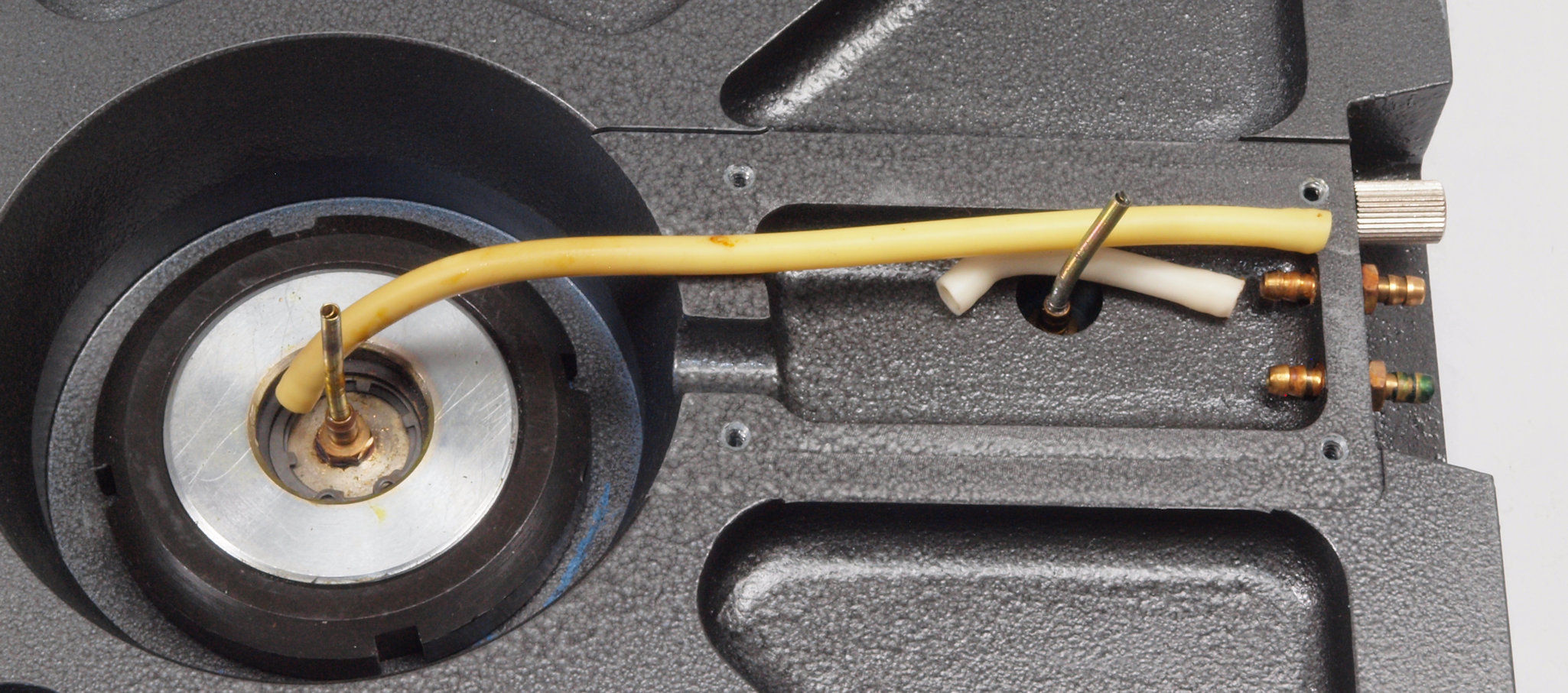 A19. SX−8000U点検中  軸のフエルトを見る。緑青の発生が見られる。