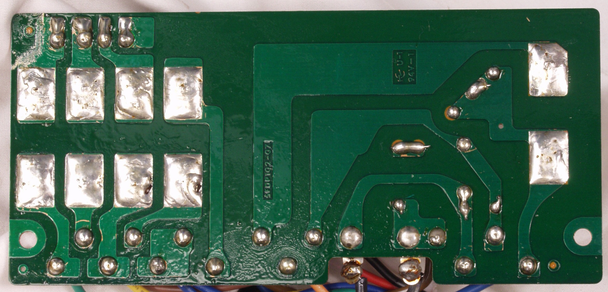 | C−6E. 修理(半田補正)後 速度制御基板裏。全ハンダをやり直す。 | ||||||||||||||||||||||||||||||