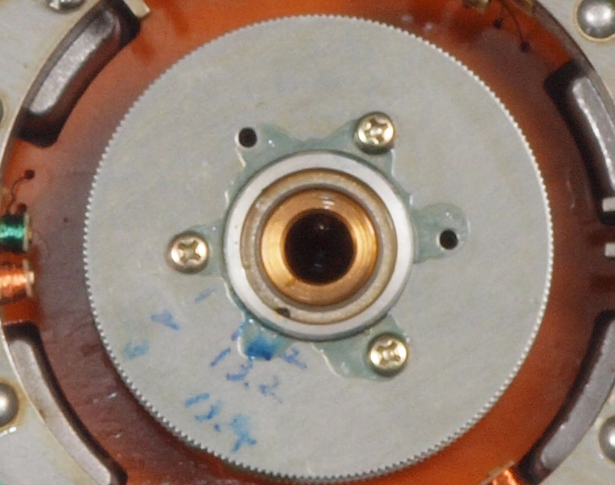 M44. 修理後 モータ回転子裏、反対側。 今後の為、錆止めを軽く塗布する。
