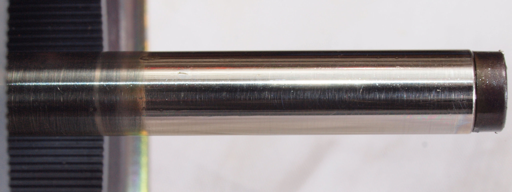 M62. 修理中 回転子軸拡大して見る、 すこし擦れ跡がある。