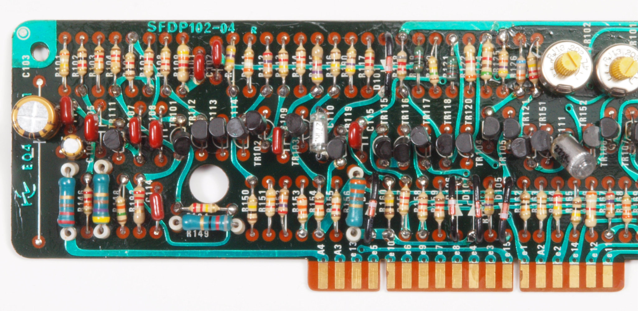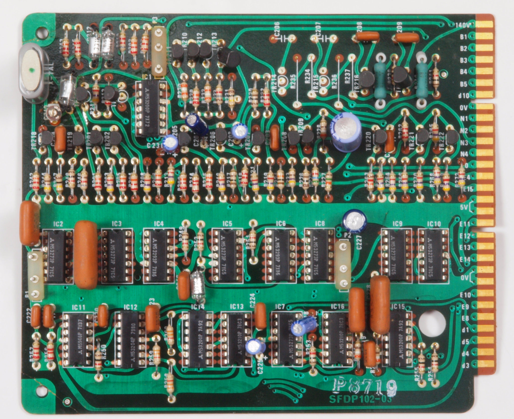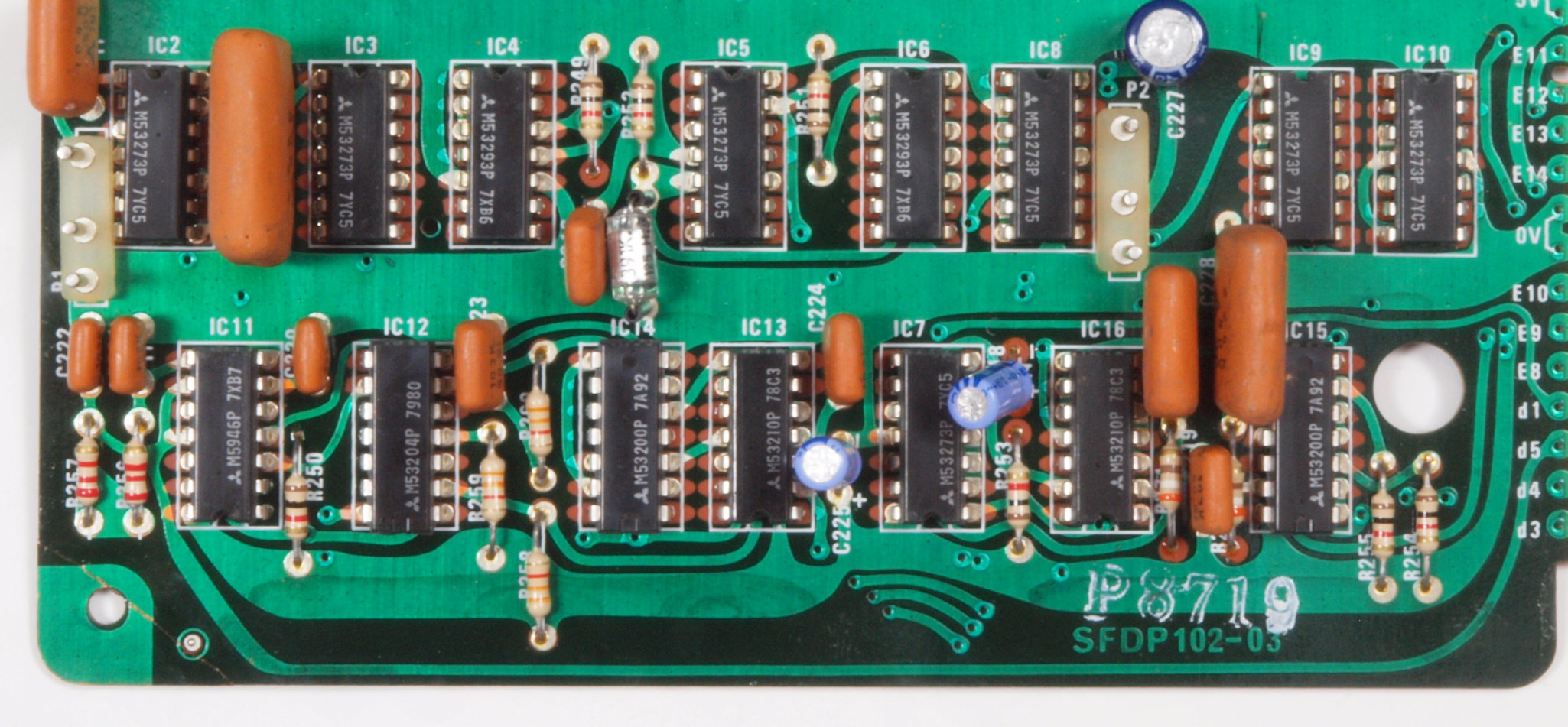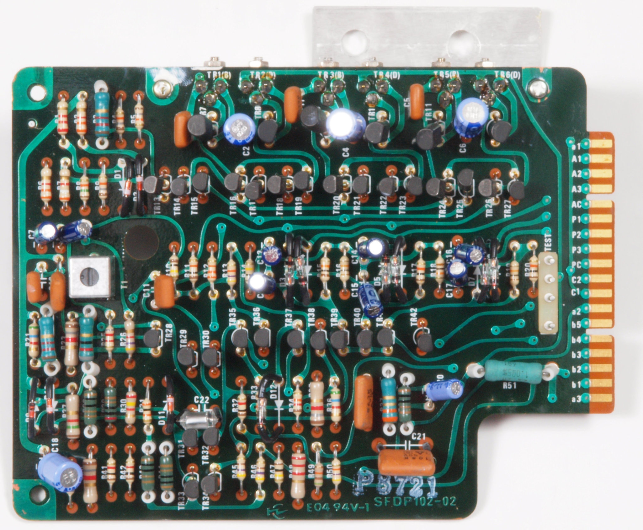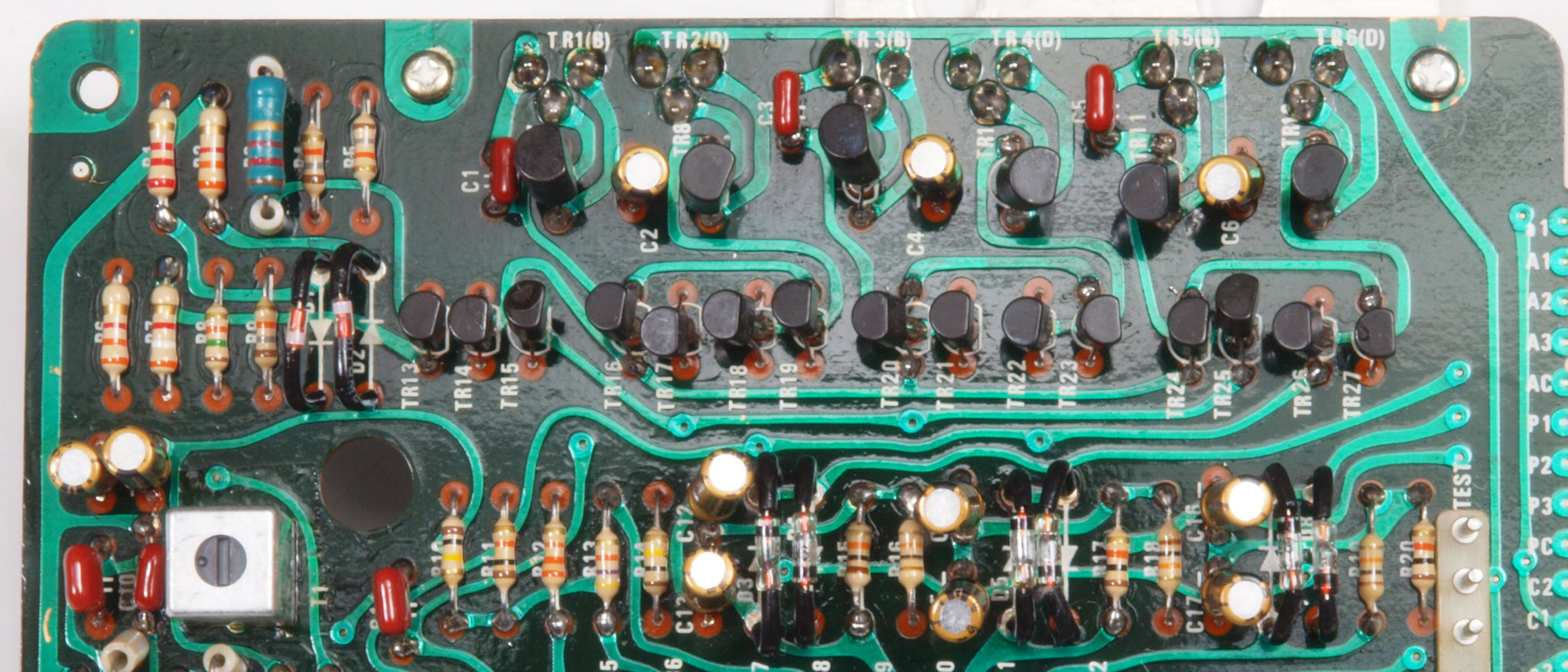 C62. 修理後 基準発生・速度切替え分周基板 電解コンデンサー7個、フイルムコンデンサー16個交換