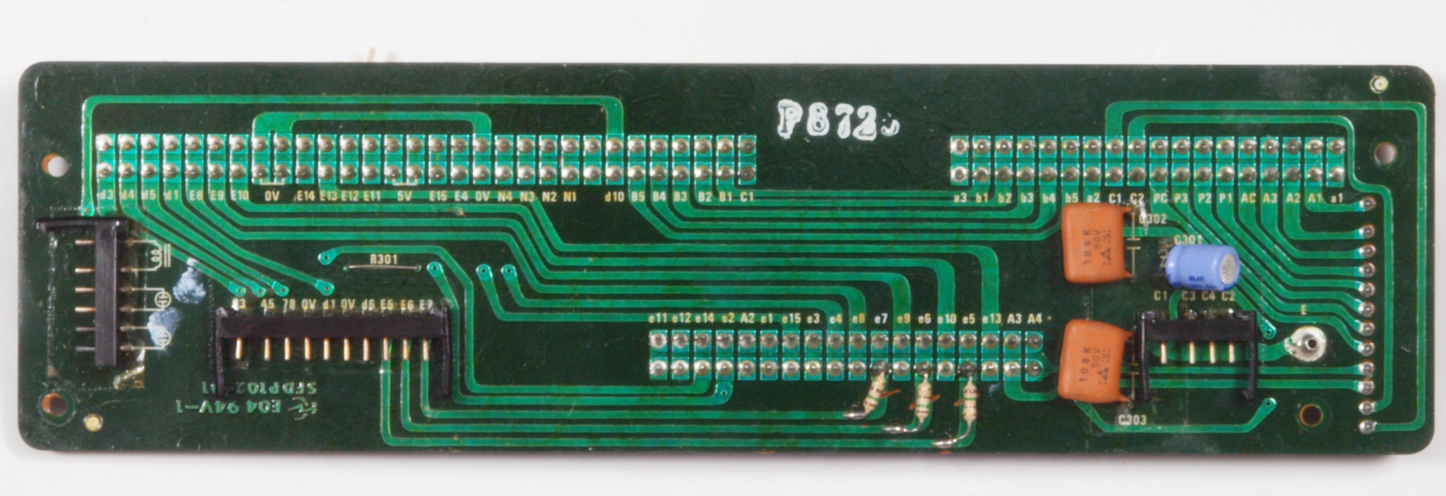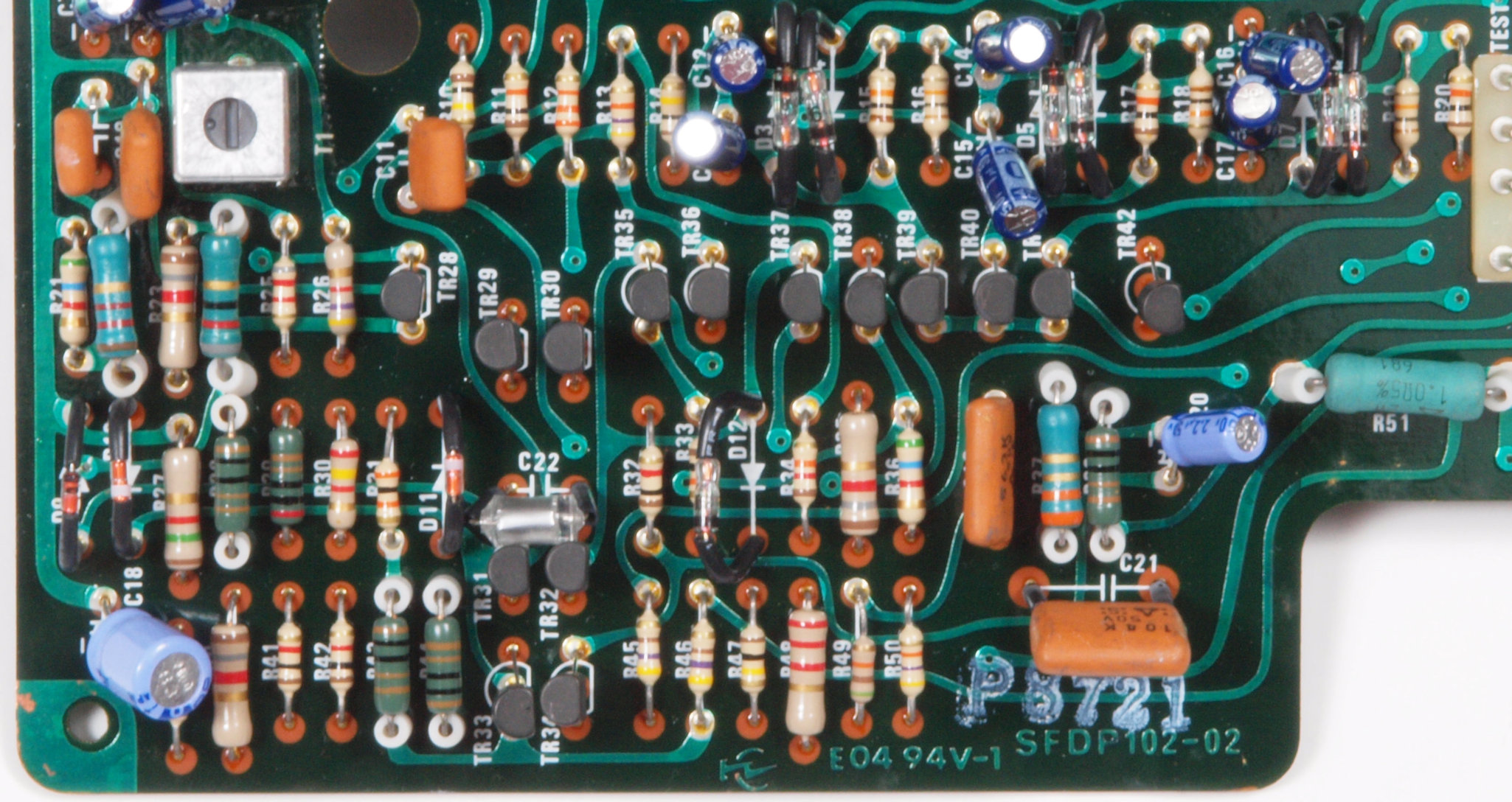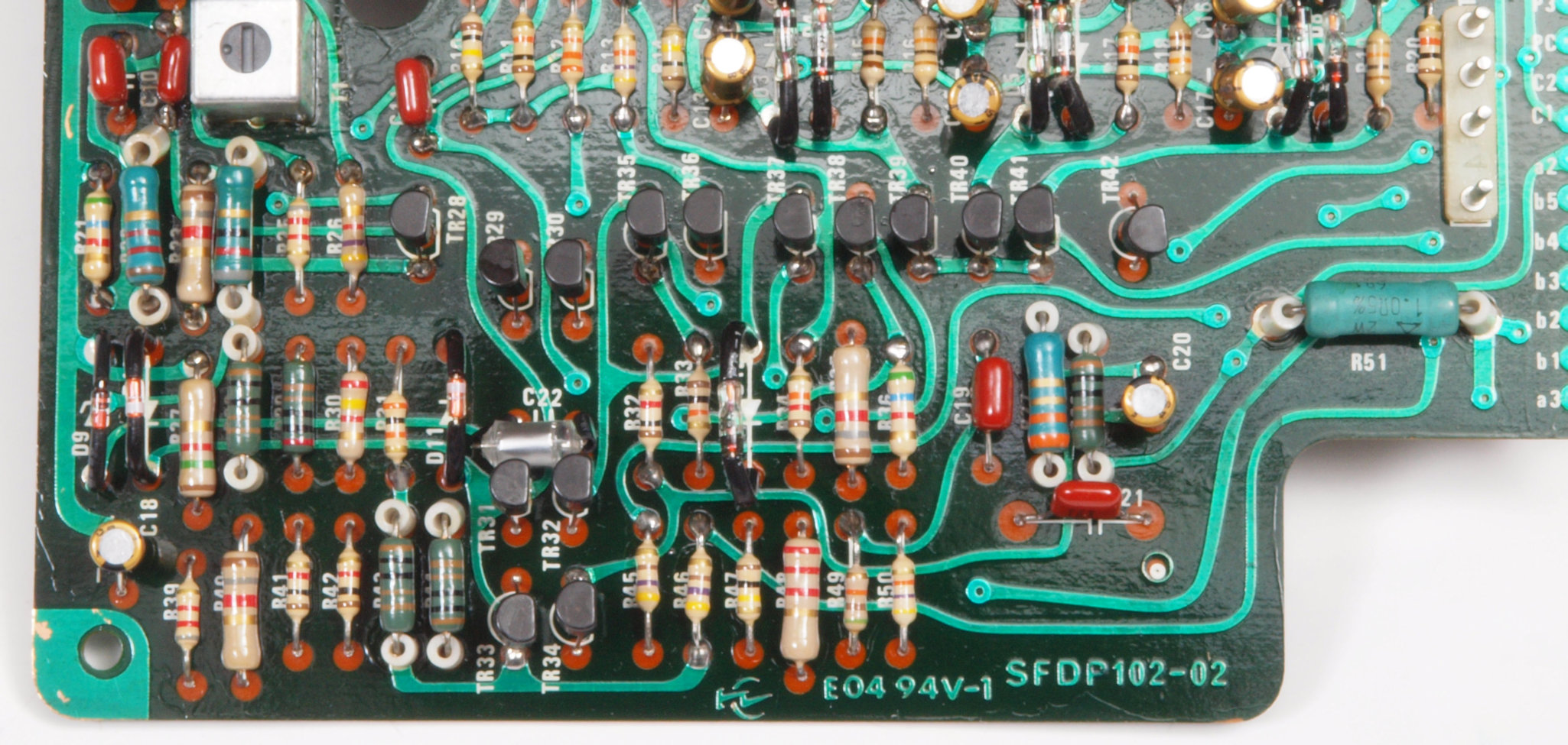 C631. 修理前 基準発生・速度切替え分周基板、スルホール半田1