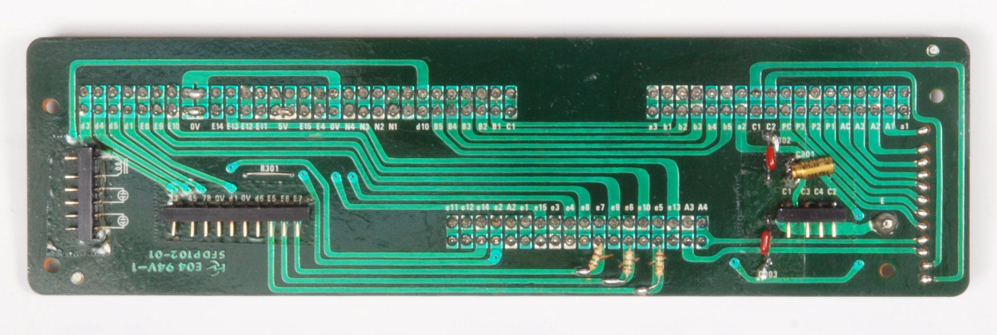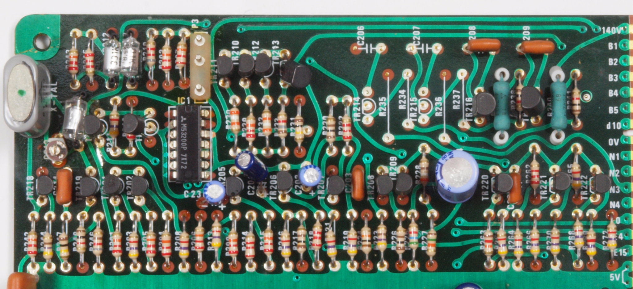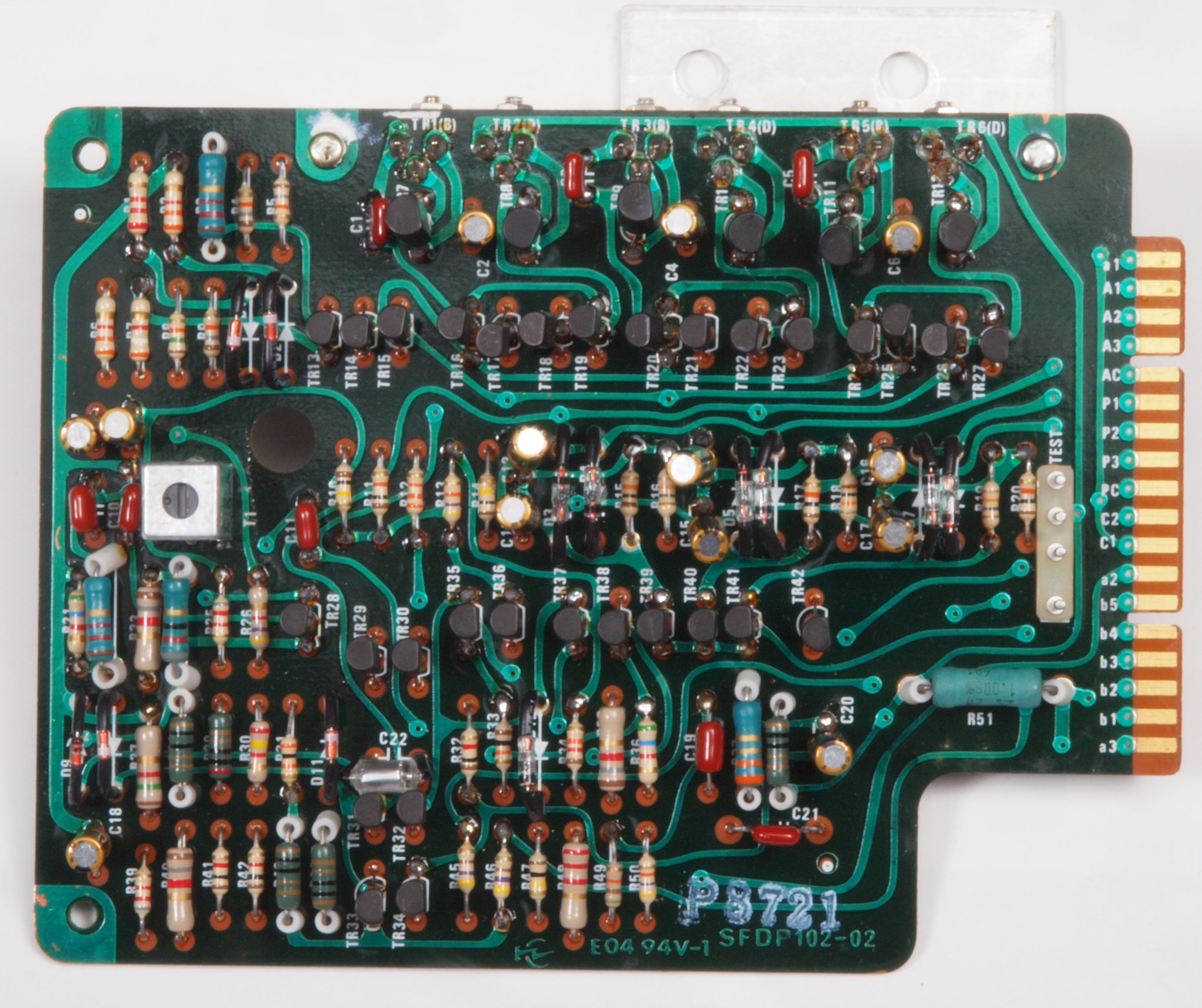 C631. 修理前 基準発生・速度切替え分周基板、スルホール半田1
