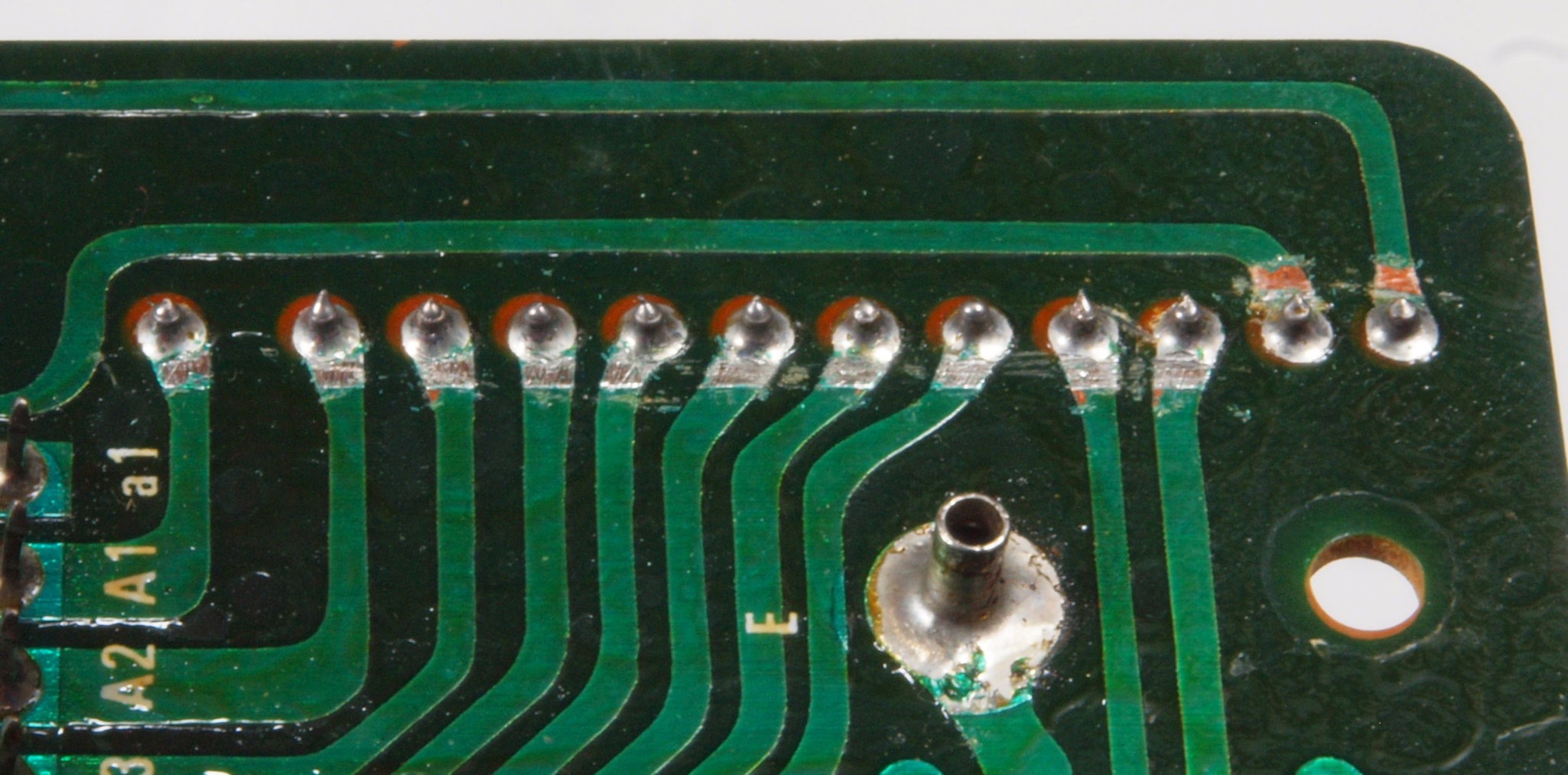 C633. 修理前 基準発生・速度切替え分周基板、スルホール半田2
