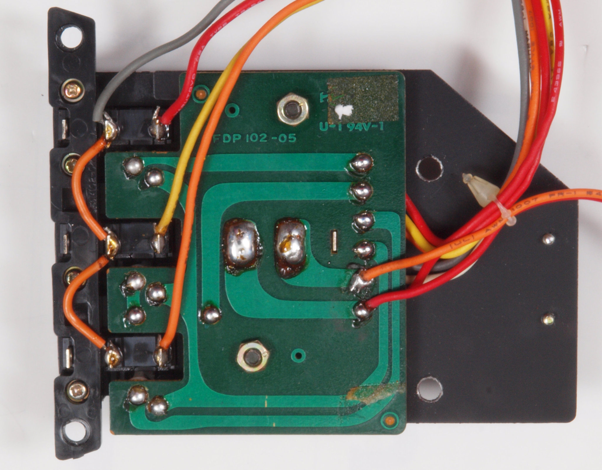 C85. 修理(半田補正)後 速度制御基板裏。全ハンダをやり直す、フイルムコンデンサー1個追加。