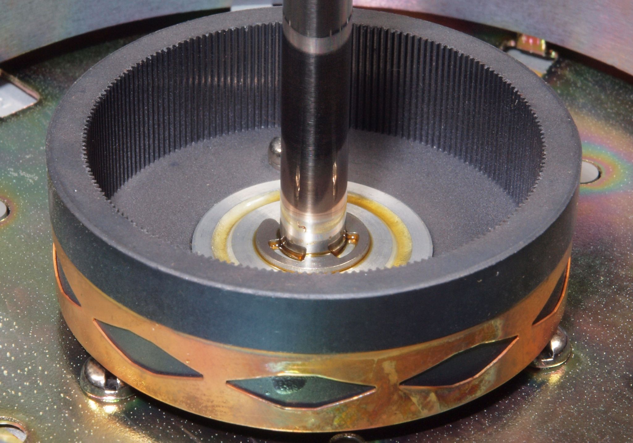 M42. 修理後 モータ回転子裏。 今後の為、錆止めを軽く塗布する。