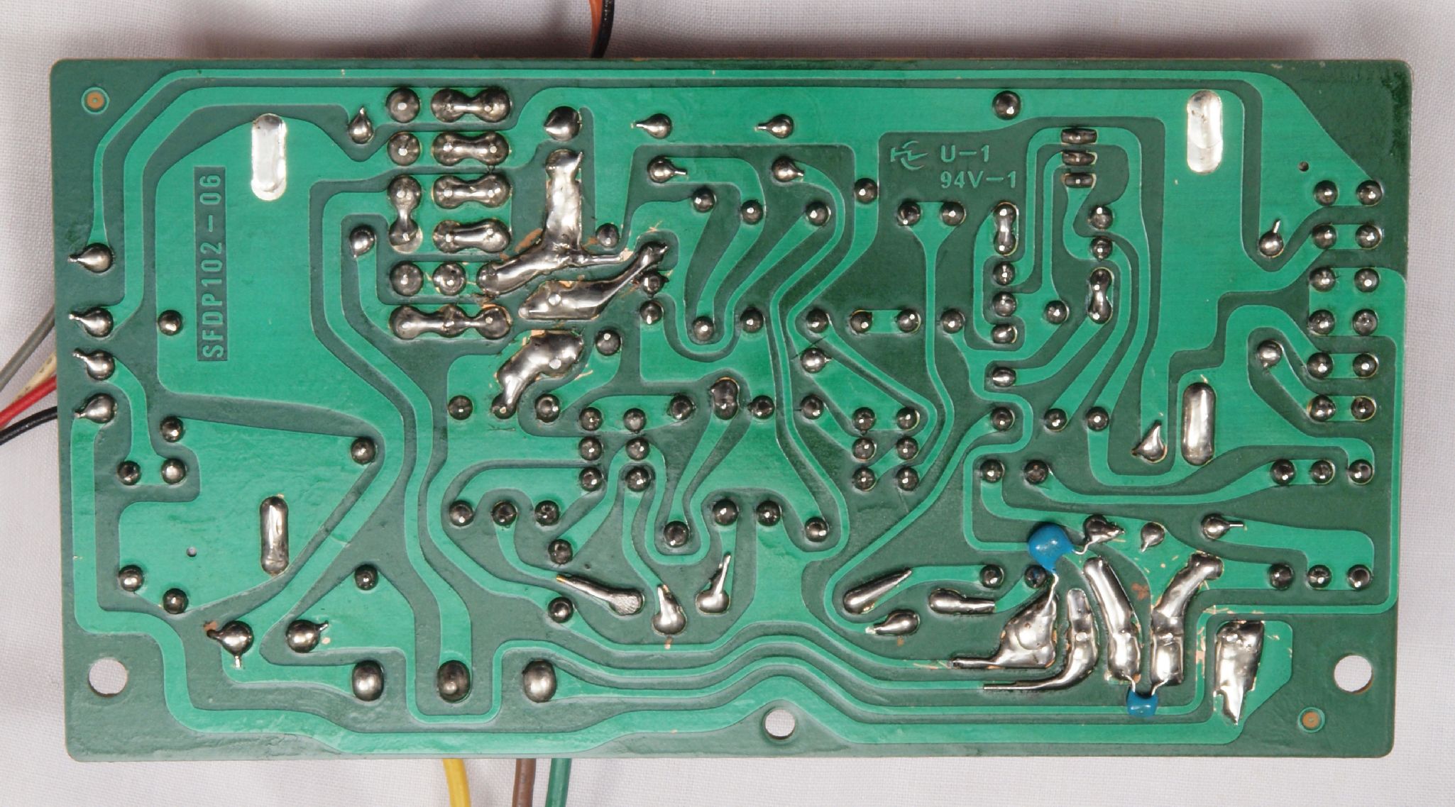 | C78. 修理(半田補正)後 メイン基板裏。全ハンダをやり直す。電解コンデンサー1個、フイルムコンデンサー2個交換。 | ||||||||||||||||||||||||||||||||||||