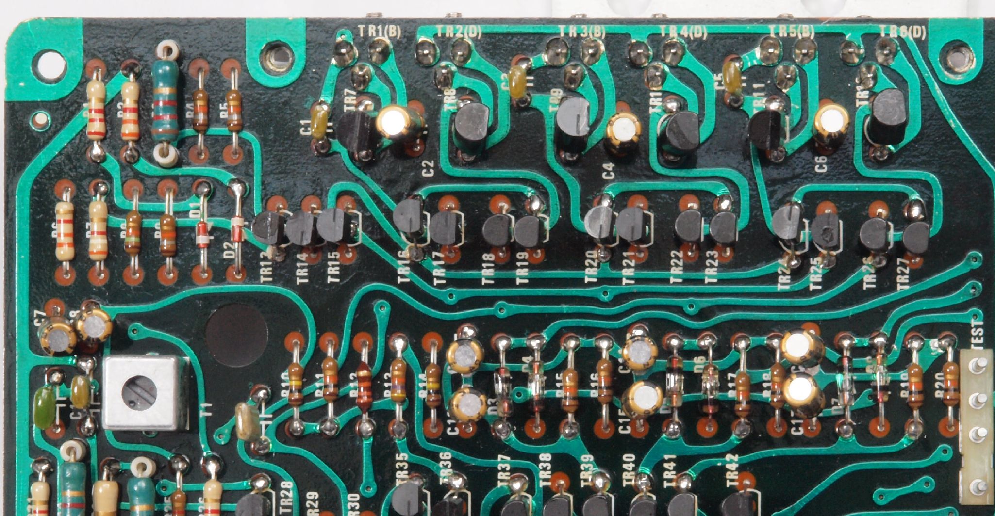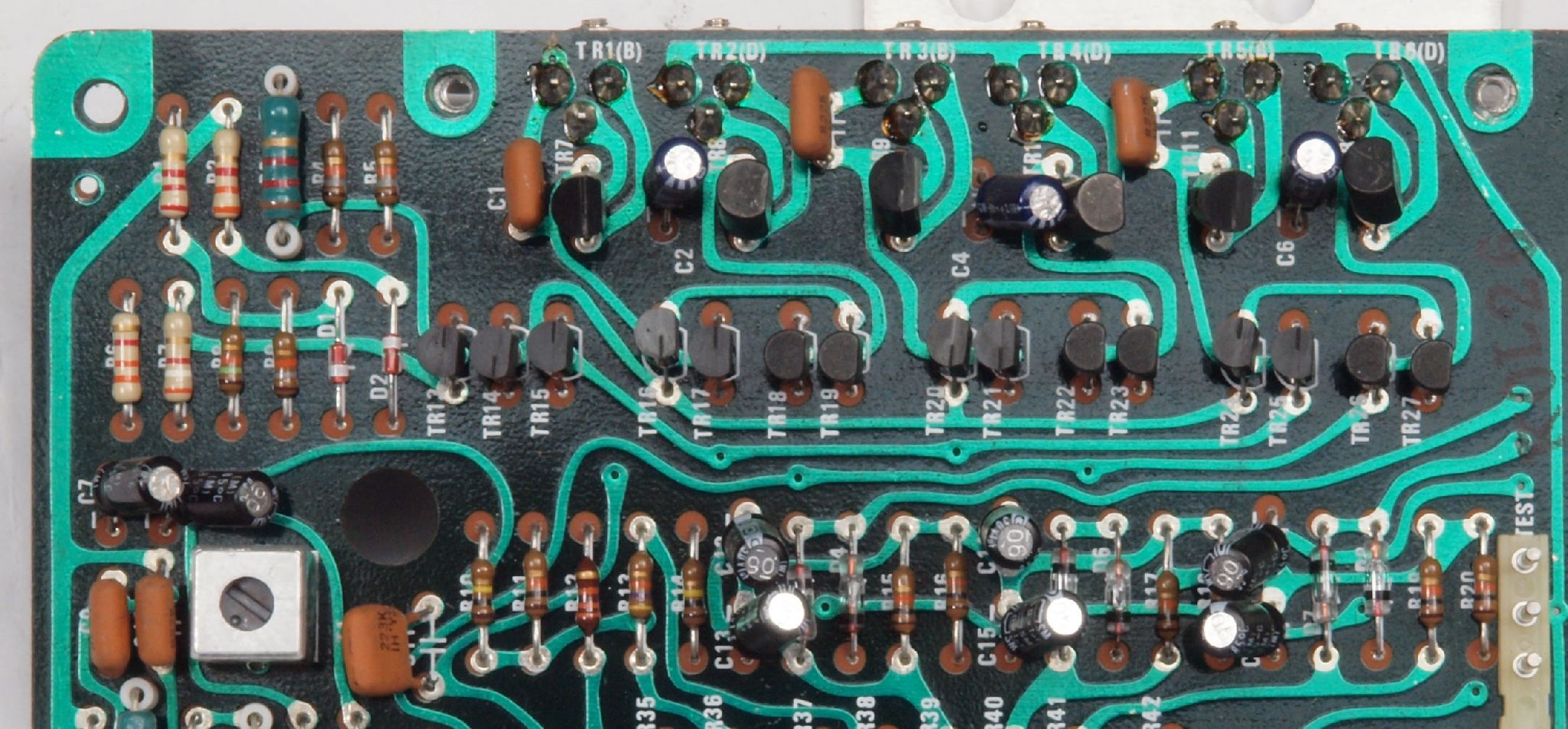 | C73. 修理(半田補正)後 メイン基板。全ハンダをやり直す。電解コンデンサー1個、フイルムコンデンサー2個交換。 | ||||||||||||||||||||||||||||||||||||