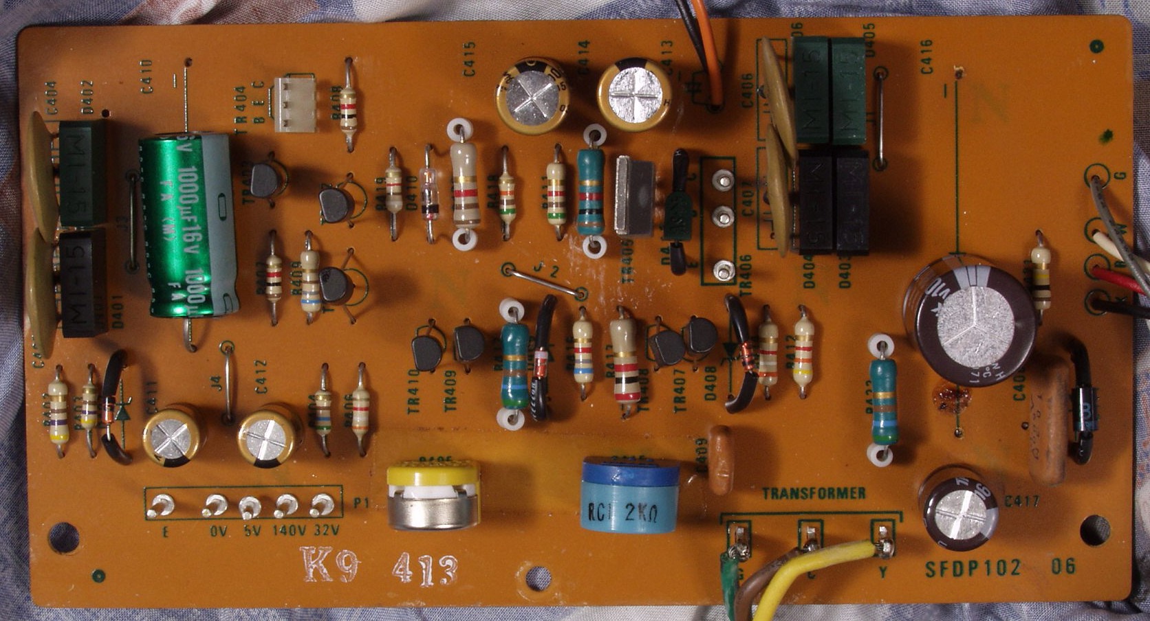| C−1B. 修理後 電源定電圧基板 電解コンデンサー7個、半固定VR2個交換 | ||||||||||||||||||||||||||||||