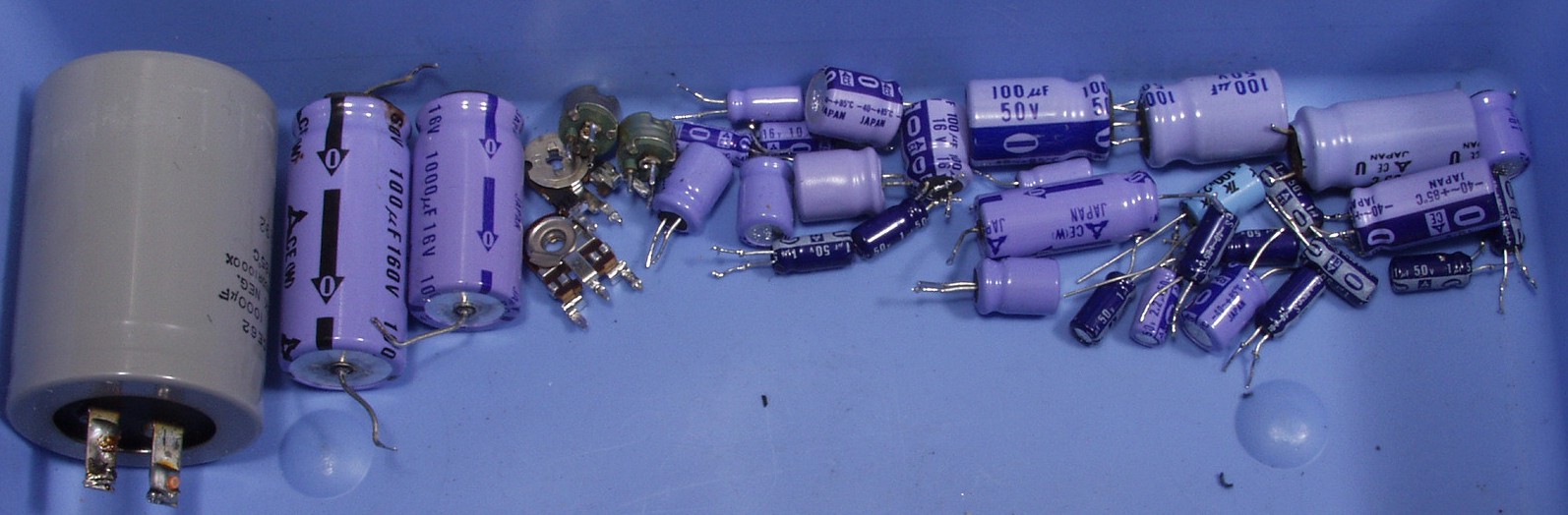 | A−2. 修理前本体 電解コンデンサーの劣化が目立つ | ||||||||||||||||||||||||||||||