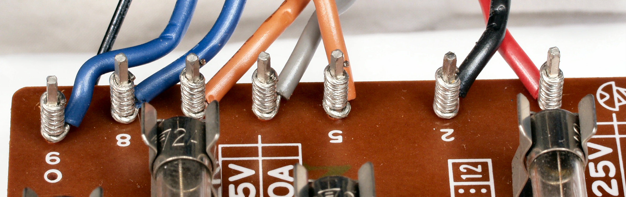 | C−6H. 完成ヒューズ基板裏。余分なフラックスを落として、コート液を塗る。 | ||||||||||||||||||||||||||||||||||||||